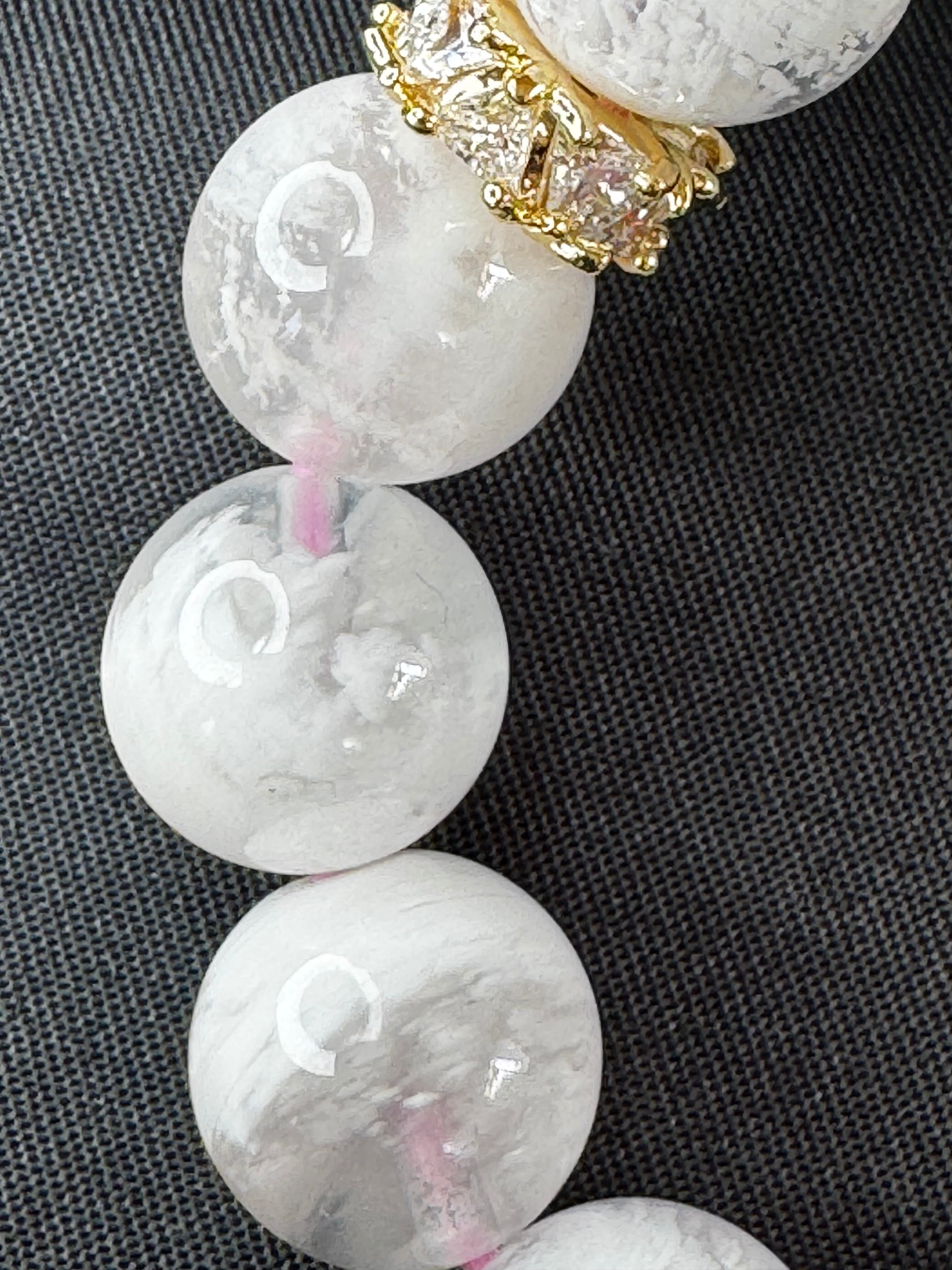心身の癒しと浄化: ローズクォーツは高い浄化効果を持ち、持ち主を癒し、邪気を払う効果があるとされます。セリサイトインクォーツは、持ち主の心を癒し、心の中から美しくなれる効果があると言われています。