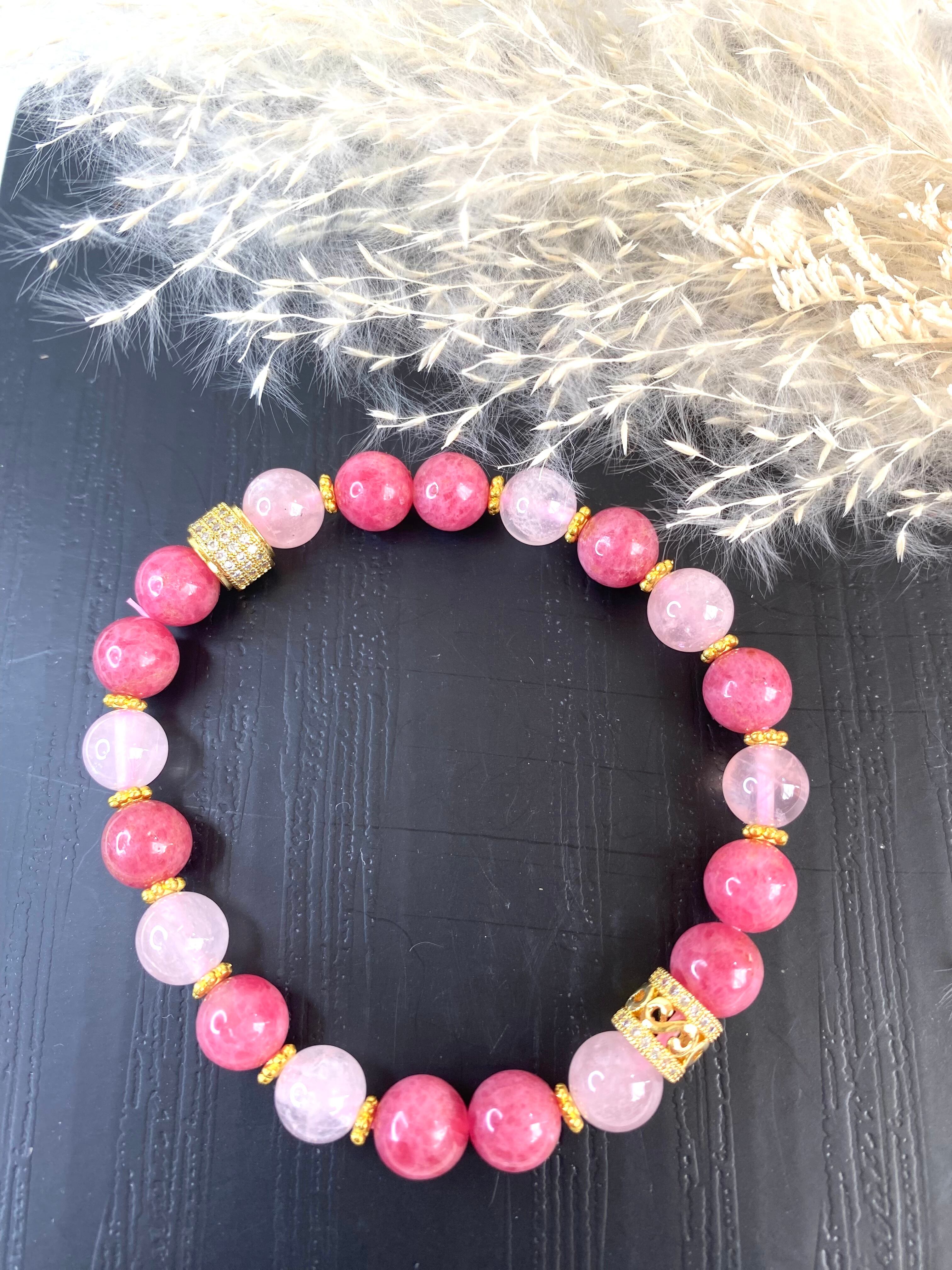 相性抜群のローズクォーツとロードナイトのブレスレットです。
