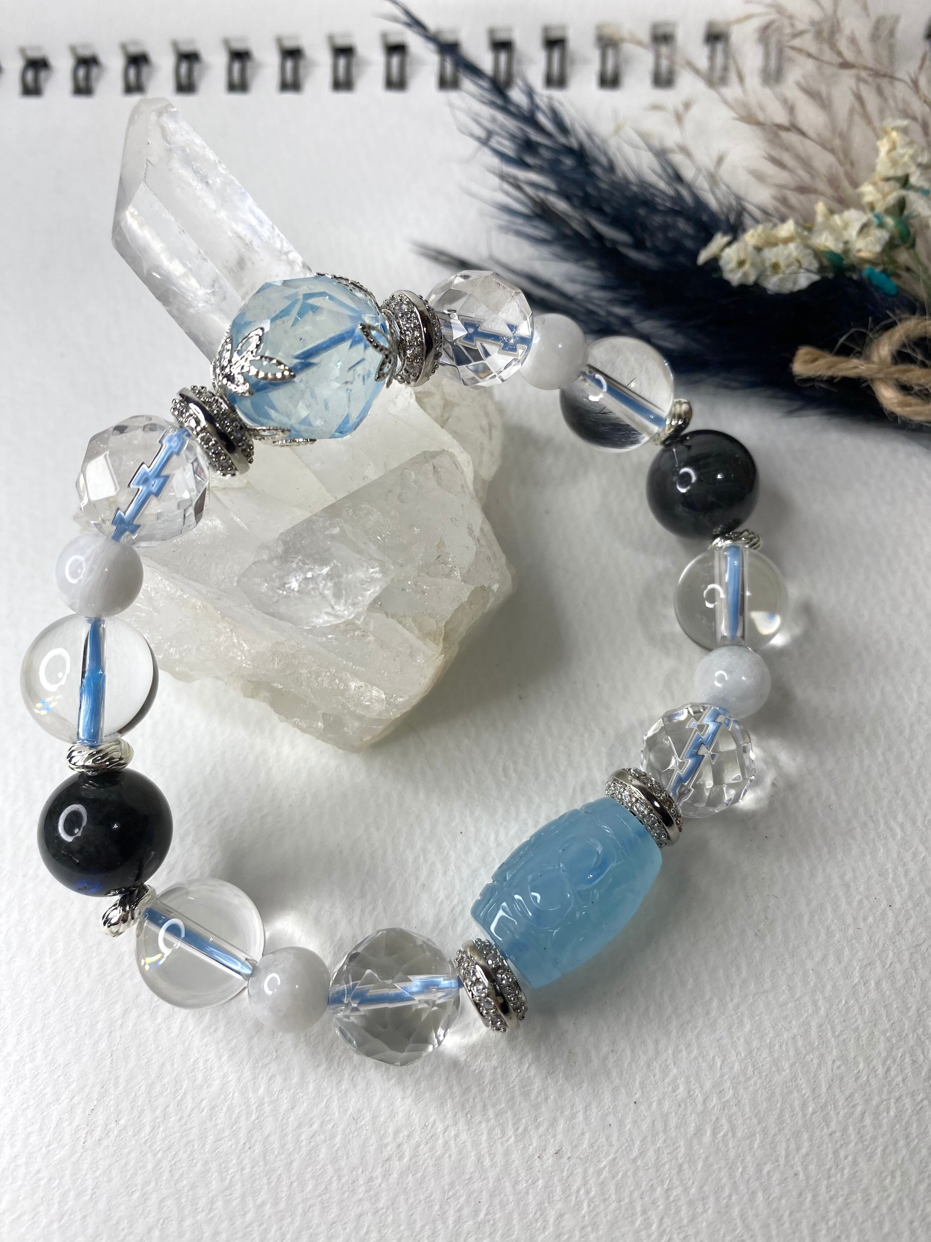 アクアマリンとマニ車ブレスレットかなりの高品質透明度抜群‼️