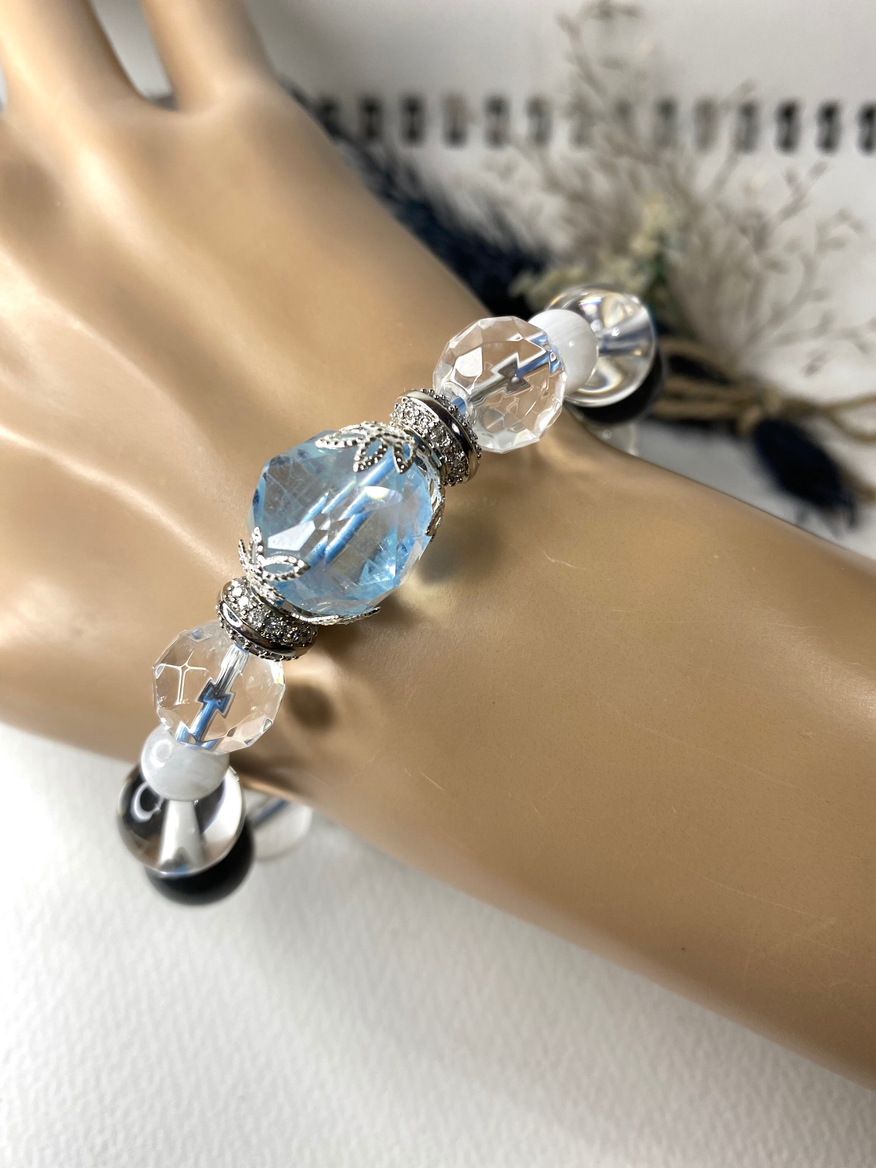 大玉で透明なアクアマリンとマニ車を使ったブレスレットです。