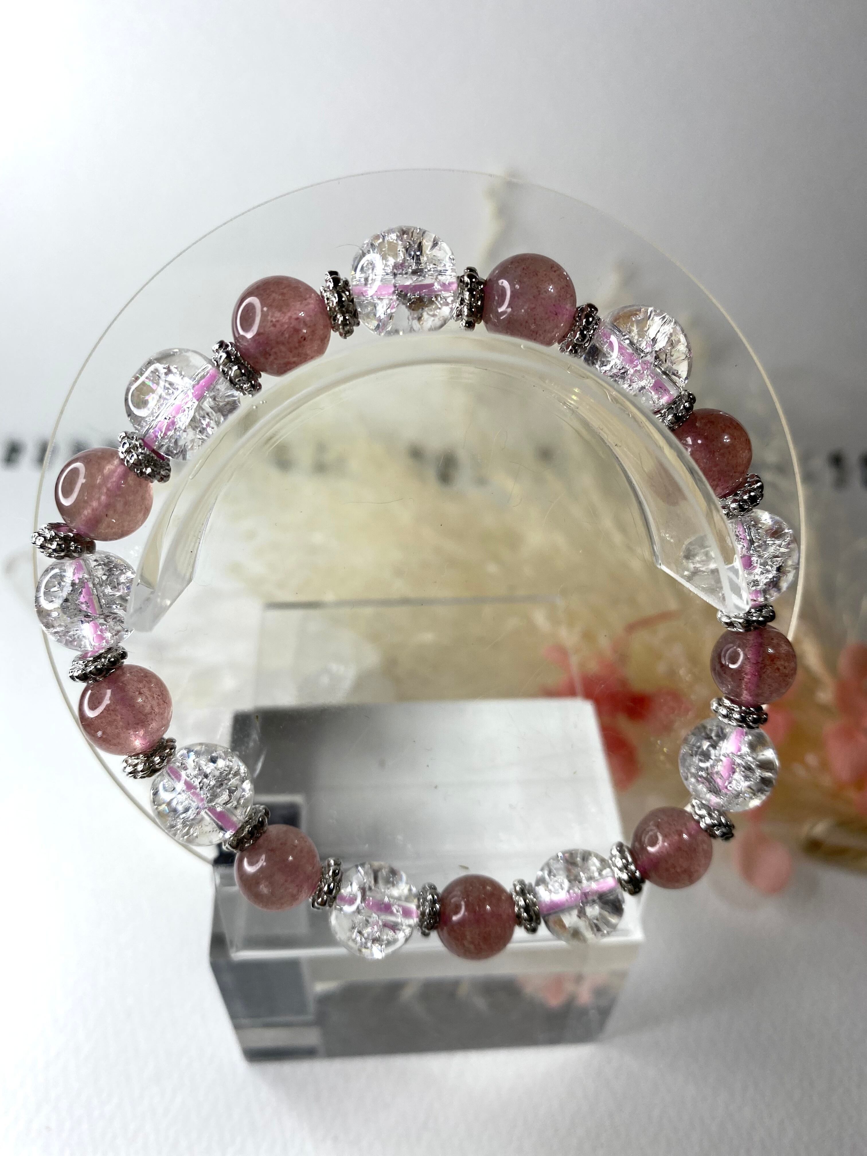ストロベリークォーツと水晶のブレスレット