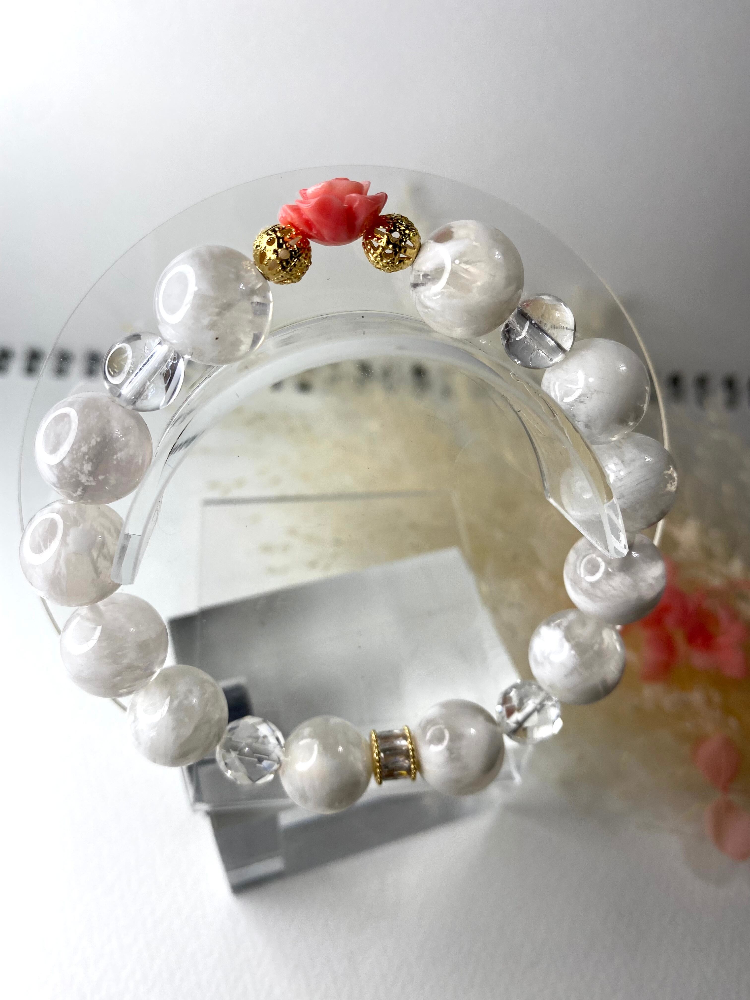 ☆ セリサイトは「美の女神」という異名を持ち、ファンデーションの原材料として用いられているパワーストーンです。 癒しの力を持ち、心身のバランスを整えてくれるといわれています。 セリサイトインローズクォーツはストレスを受けつつも頑張っている方にお勧めです。