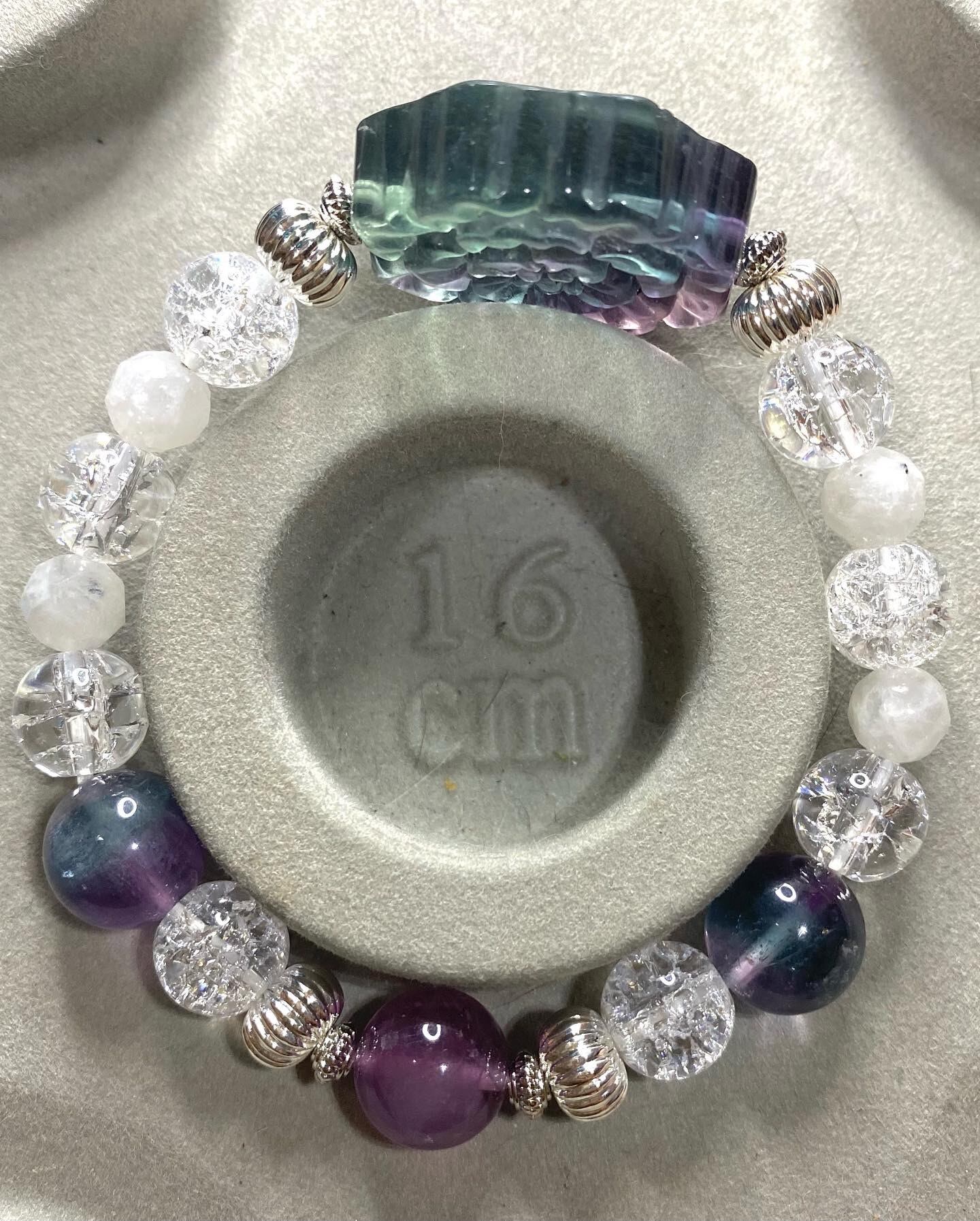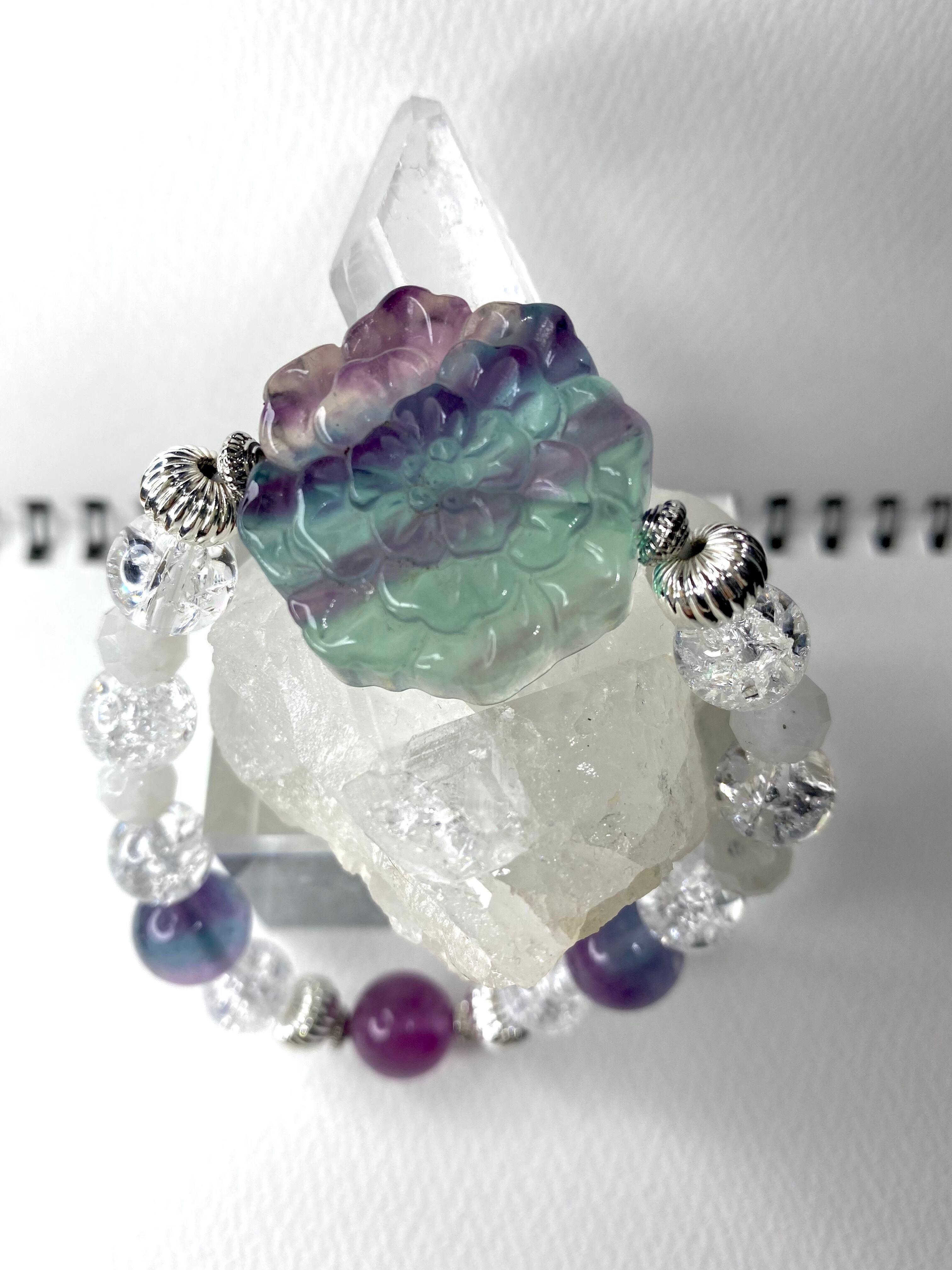 菊バイカラーフローライトと水晶、ムーンストーンのパワーストーン