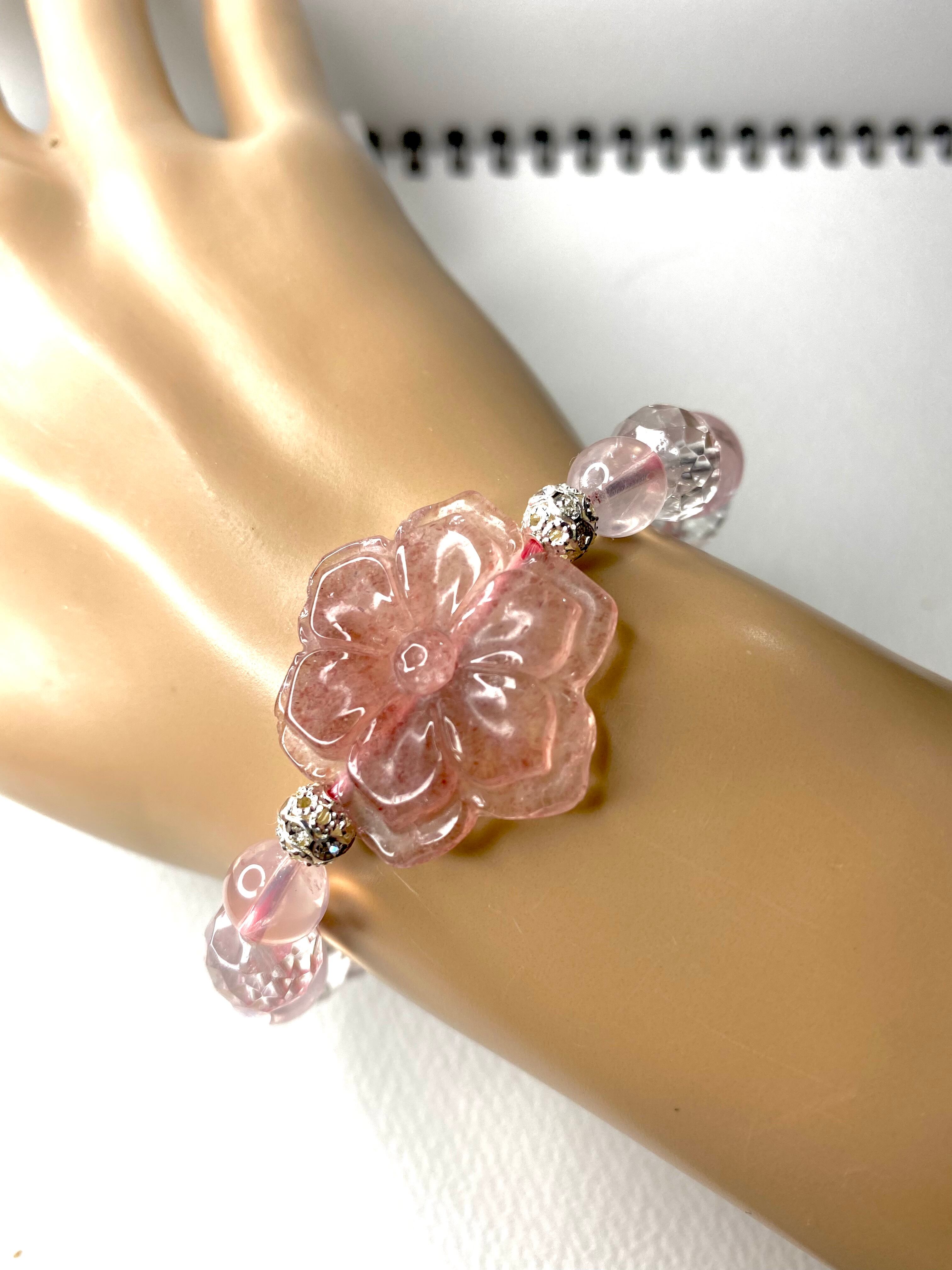 ストロベリークォーツとアイリスローズクォーツの美と希望のパワーストーンブレスレット