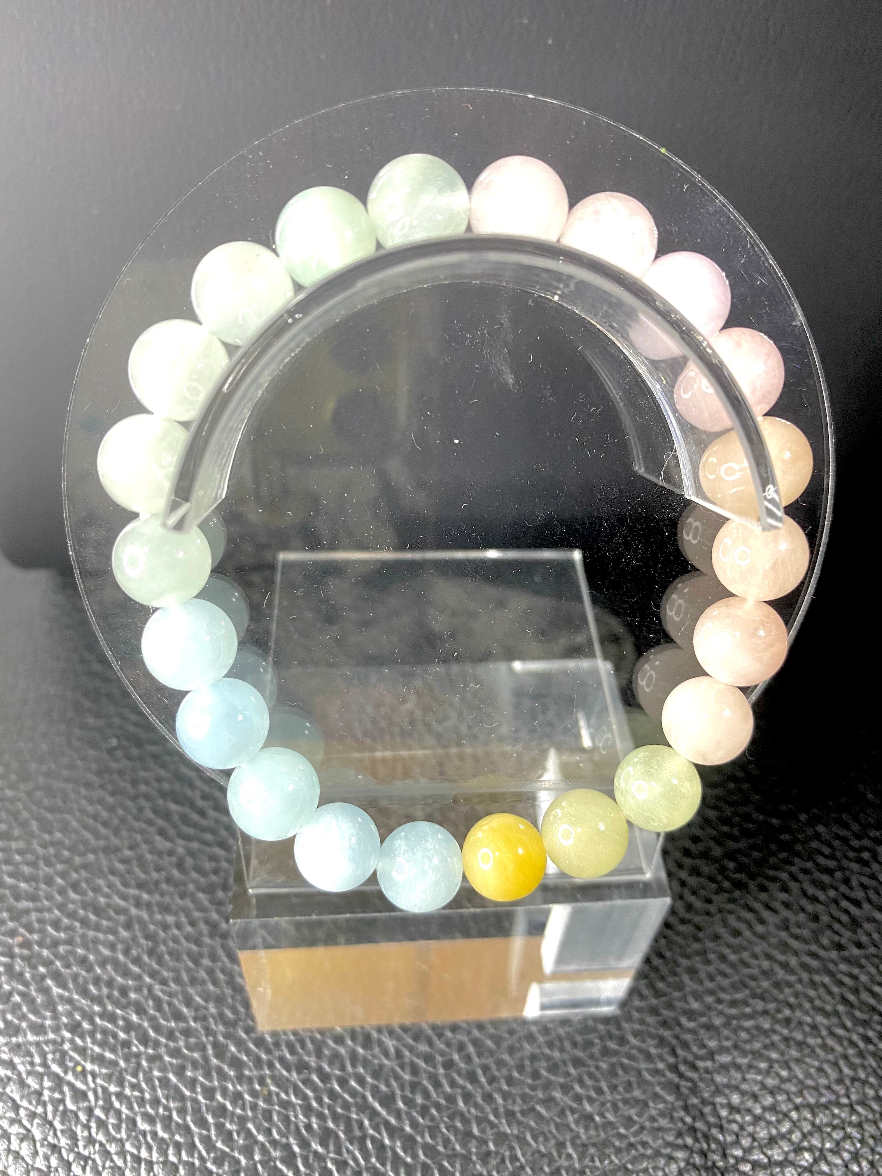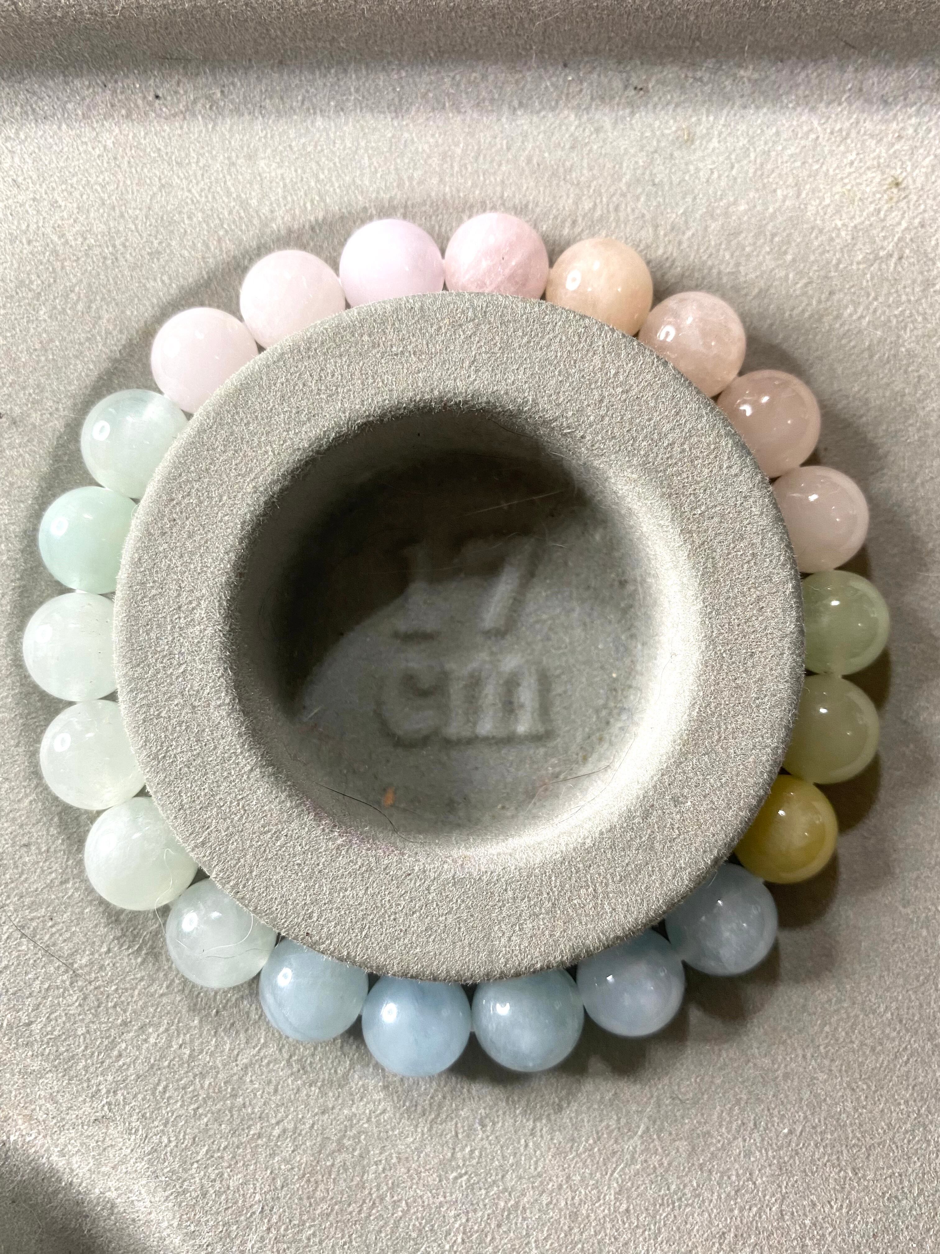 ミックスベリルは、青色のアクアマリンや緑色のエメラルド、黄色のヘリオドール(イエローベリル)、無色のゴシェナイト、ピンク色のモルガナイトなどのベリル鉱物を総称した名前です。成分によって色が変わり、それぞれ別の名称で呼ばれていますが、どれも同じ鉱物です。