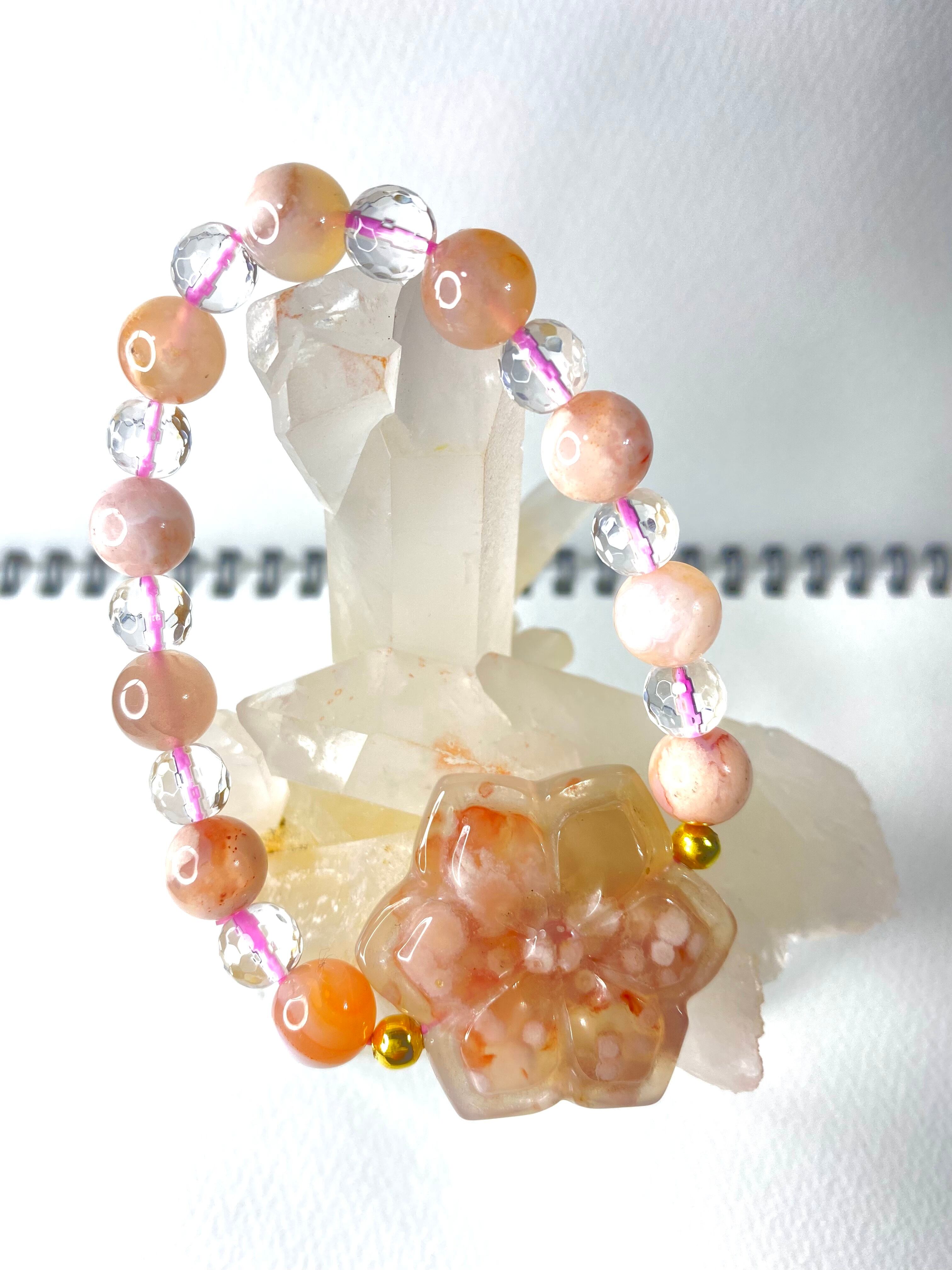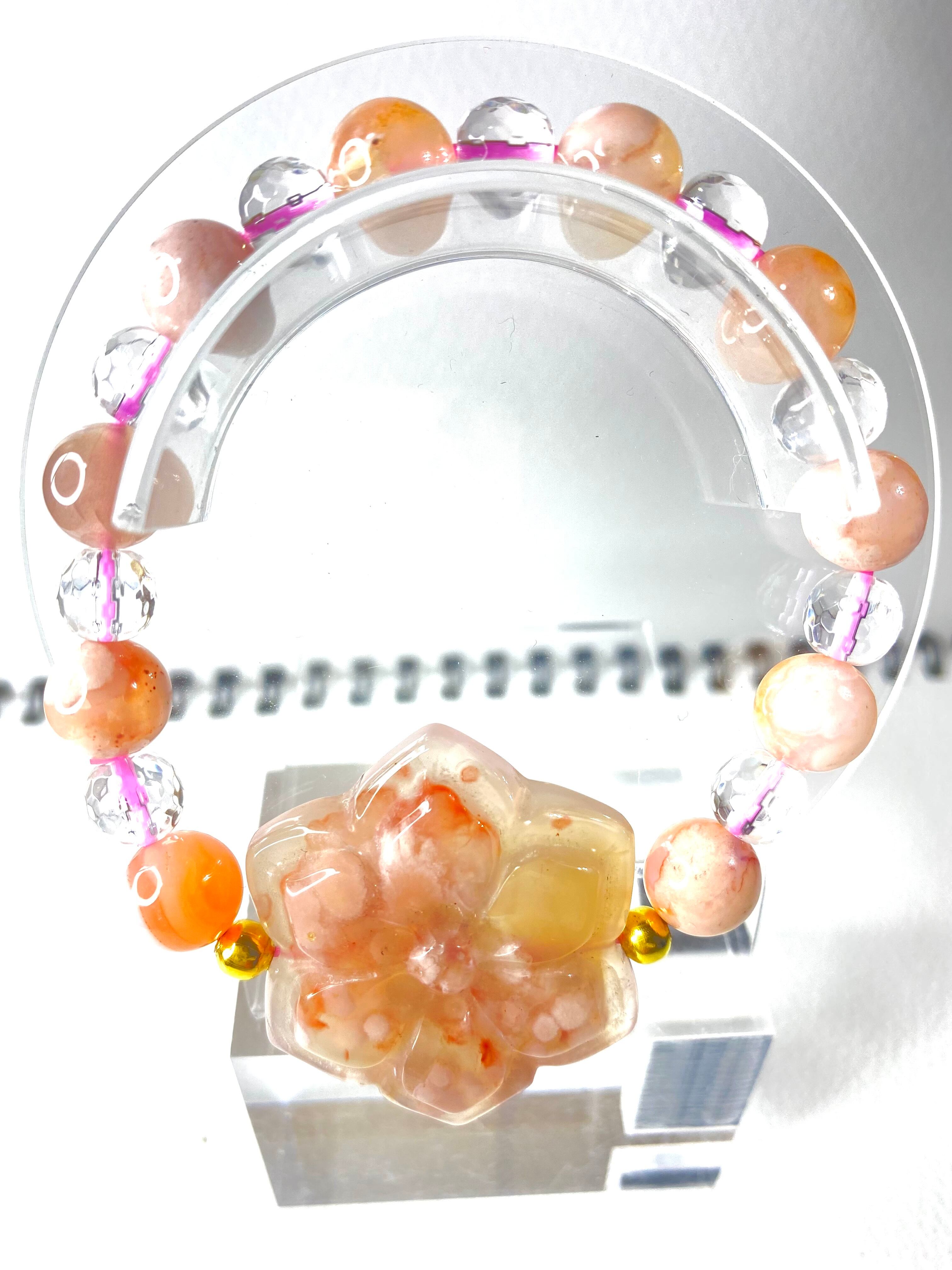 桜瑪瑙の牡丹の花の癒しブレスレット。ピンク系。