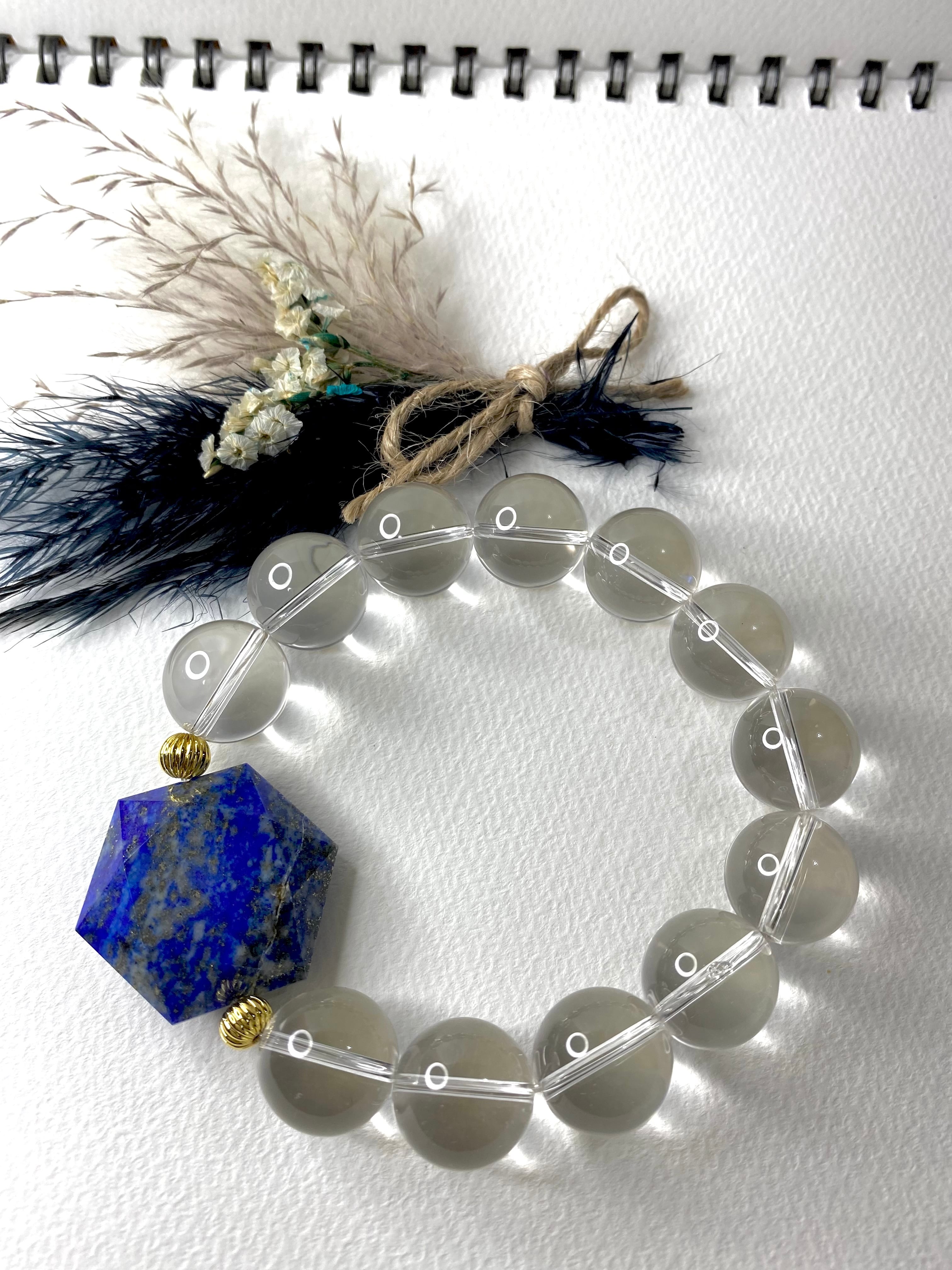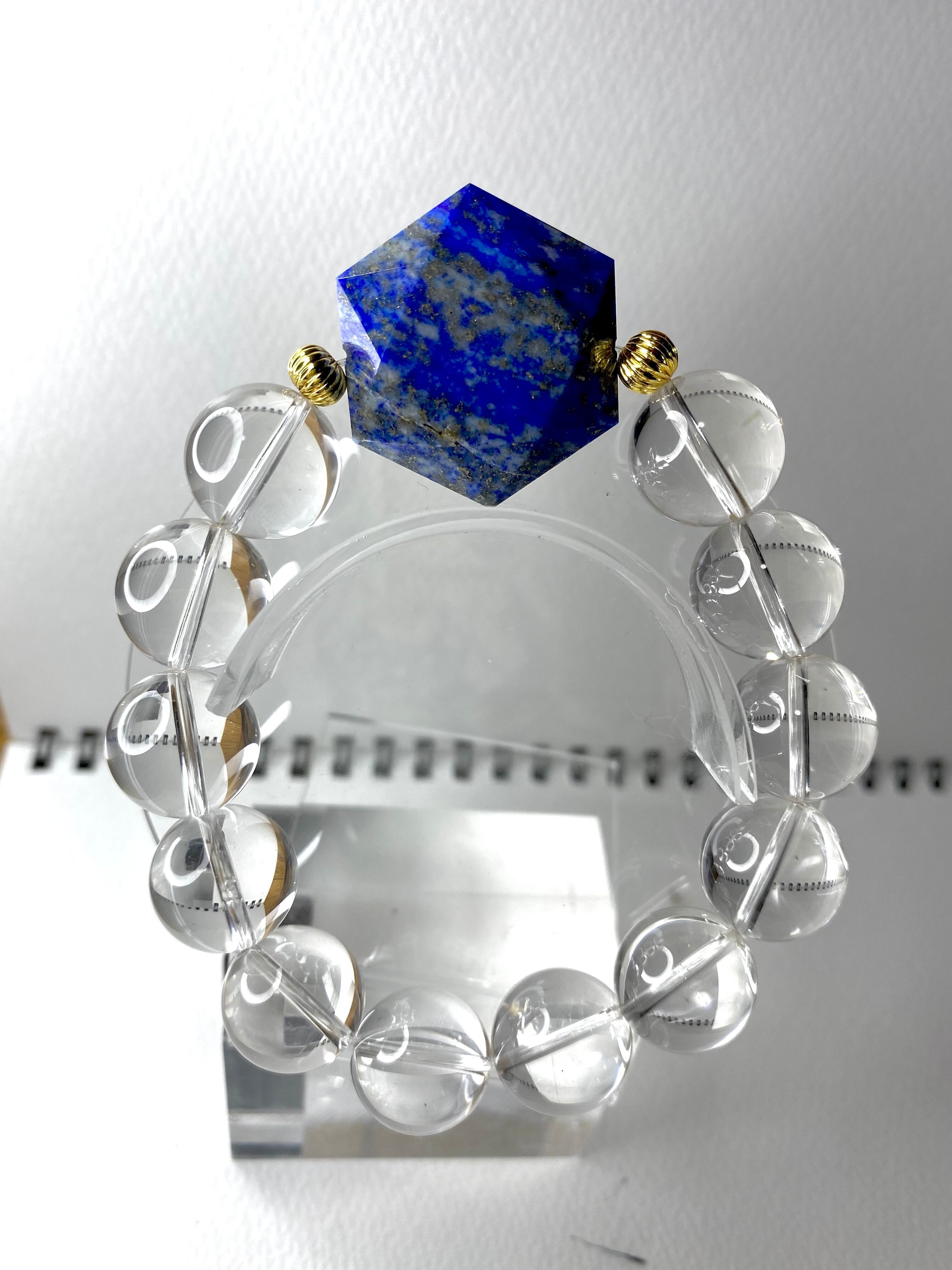 ラピスラズリの六芒星と水晶のお守りブレスレット
