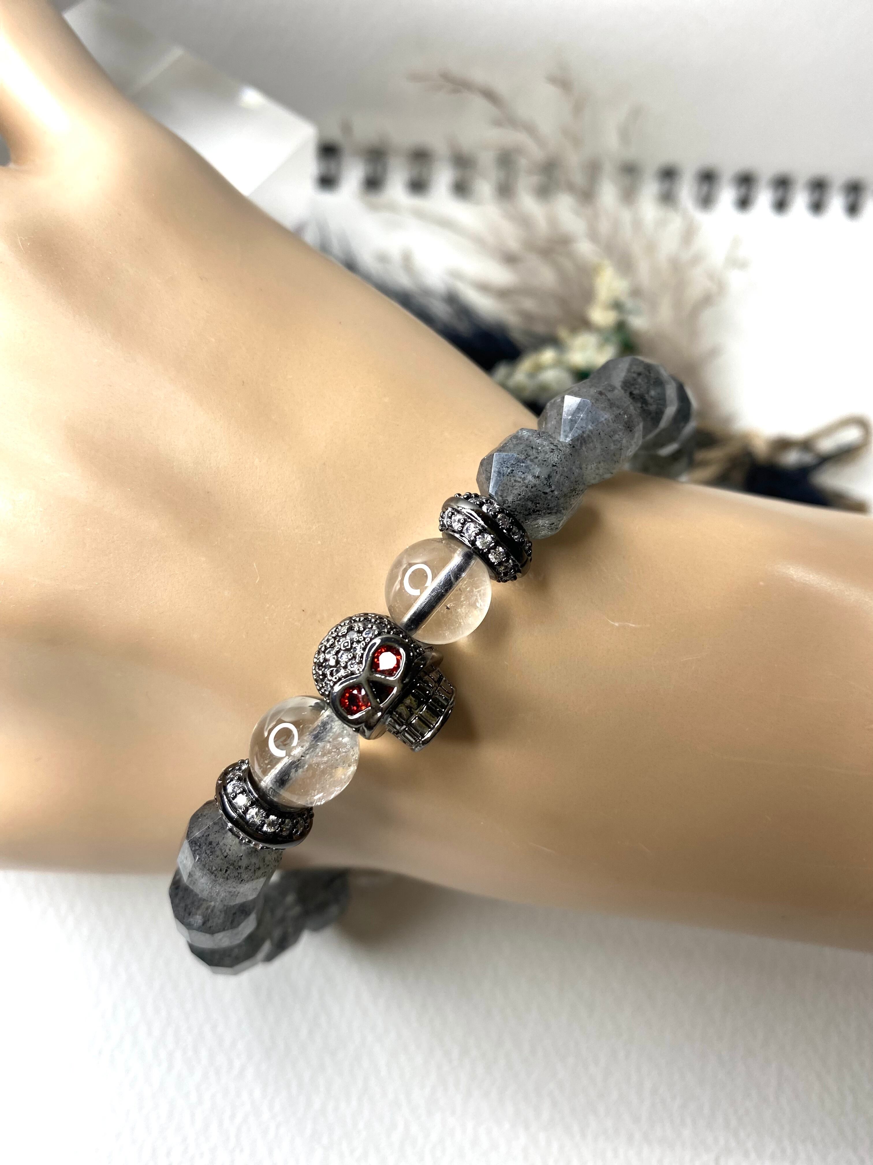 ブラックマイカとエレスチャル水晶のお守りブレスレット