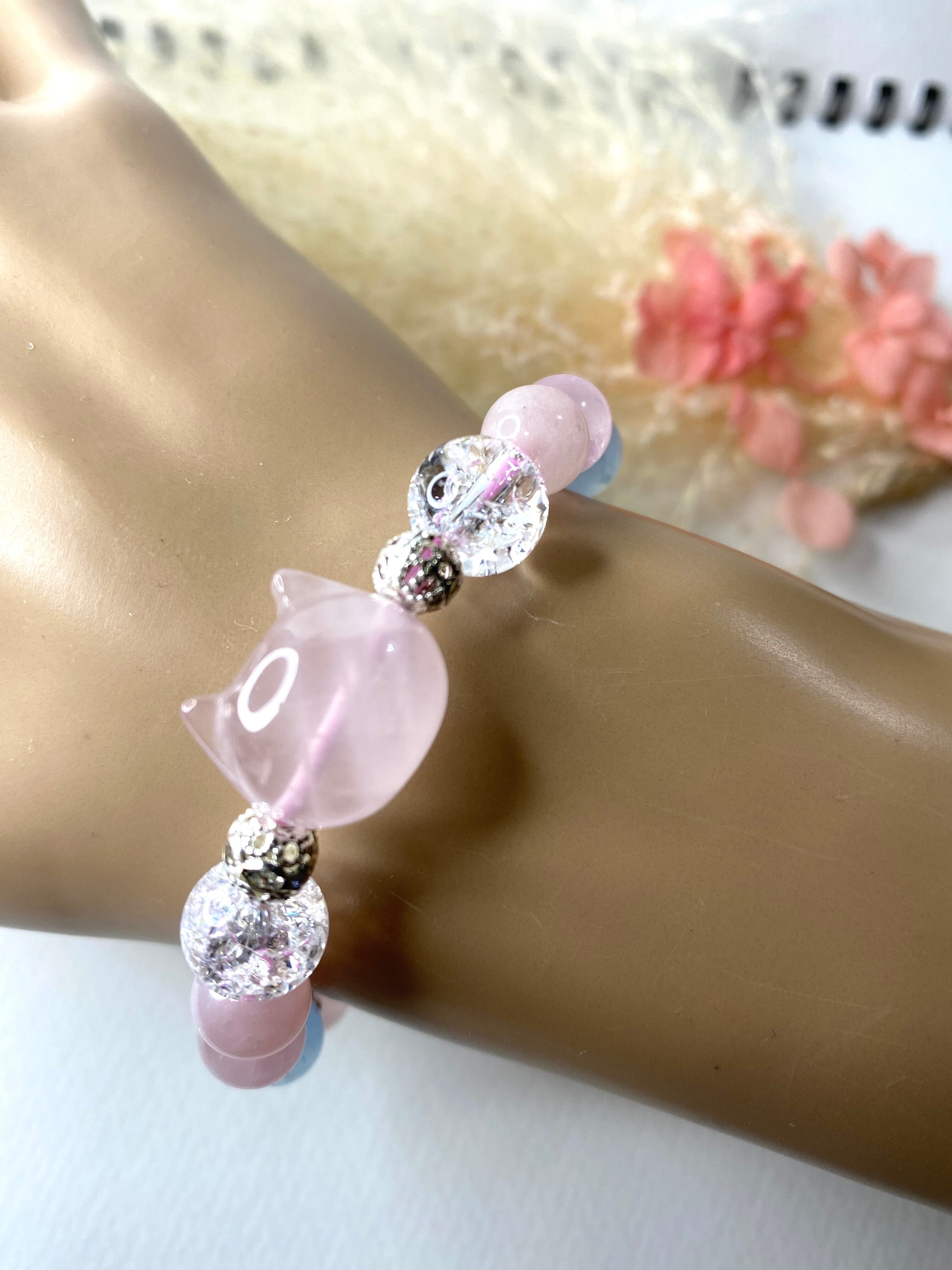 猫好きさんにはたまらないローズクォーツとアクアマリンの美と出会いのブレスレット