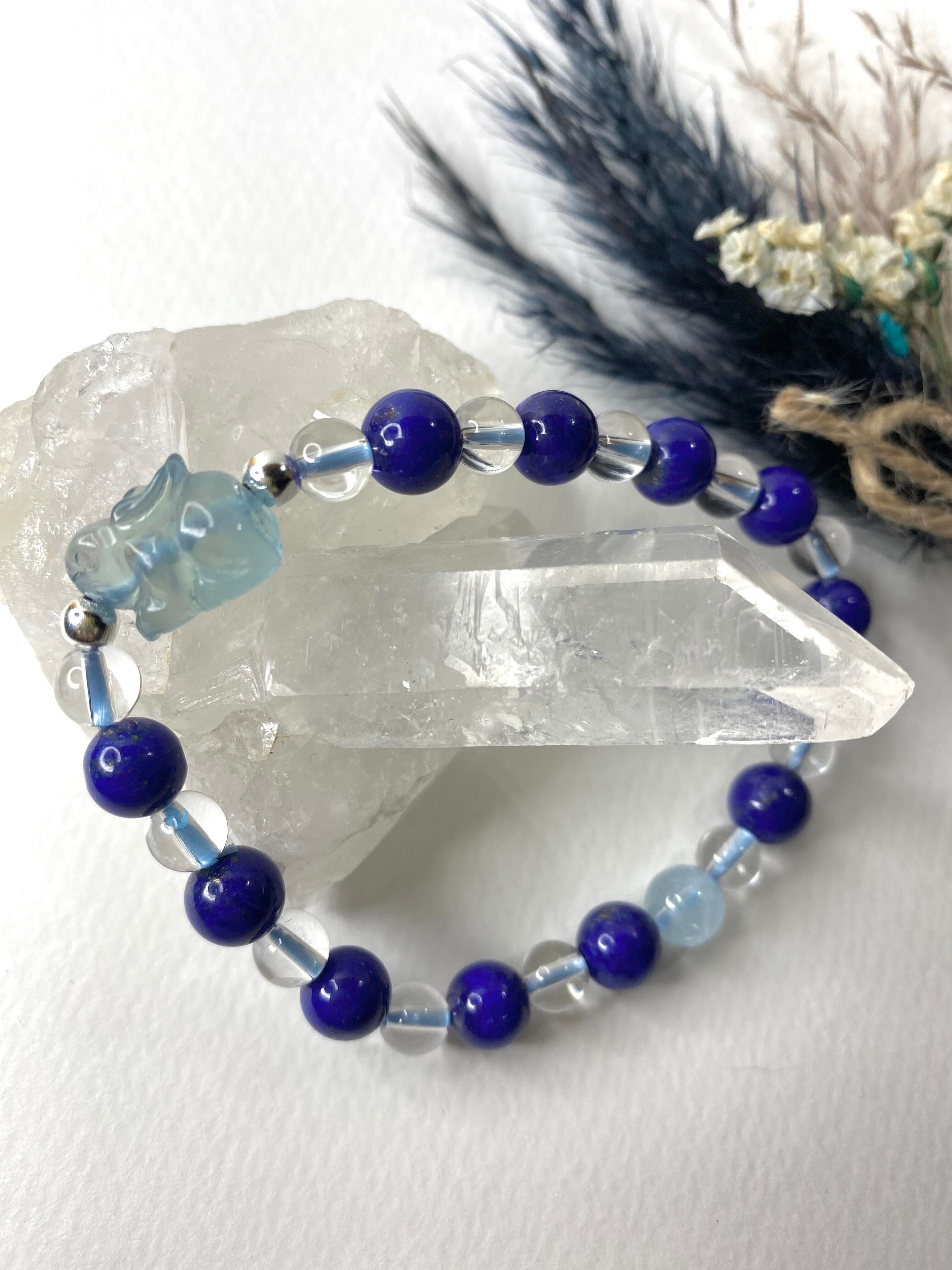 ☆ ラピスラズリは12月の誕生石で、太古の昔より聖石と崇められた歴史のある石です。 深く鮮やかな青色が特徴で、瑠璃(るり)という和名でも知られています。 邪気や邪念を打ち払う強力なエネルギーで幸運を引き寄せ、成功をつかみ取るための知性や直観力を与えるとされています。