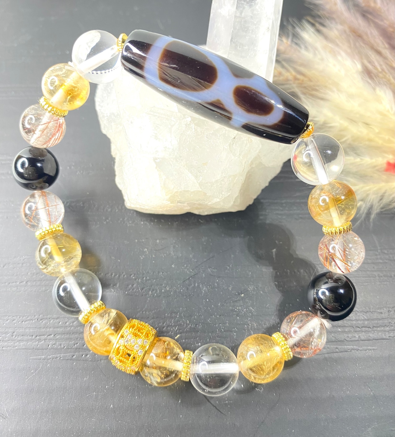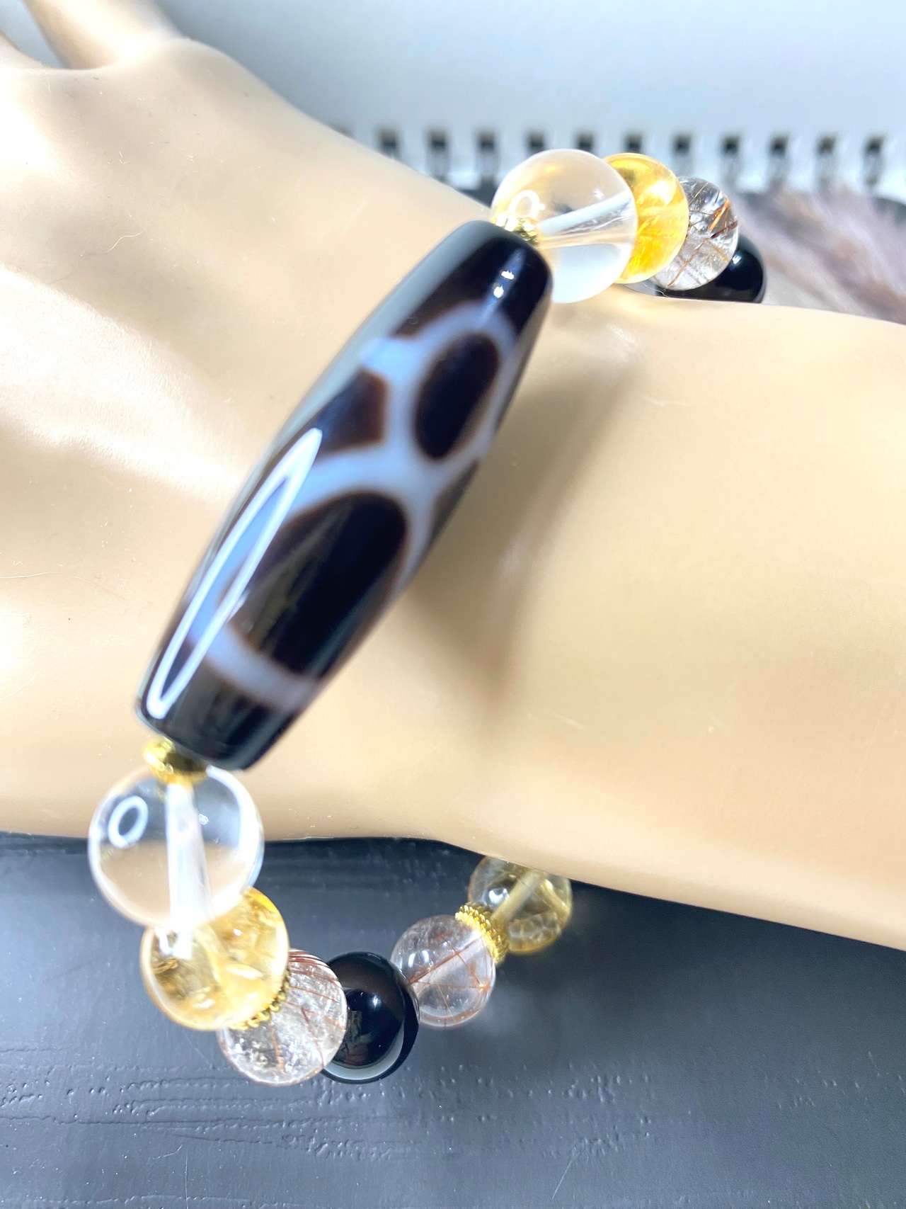 至純天珠とは安価な天珠と違い、老天珠の伝統的な製法に基づいて上質な瑪瑙(めのう)を約4ヵ月程かけて染料を内部まで浸透させたのちに表面を丹念に磨き上げ、美しい光沢を実現したのが至純天珠です。