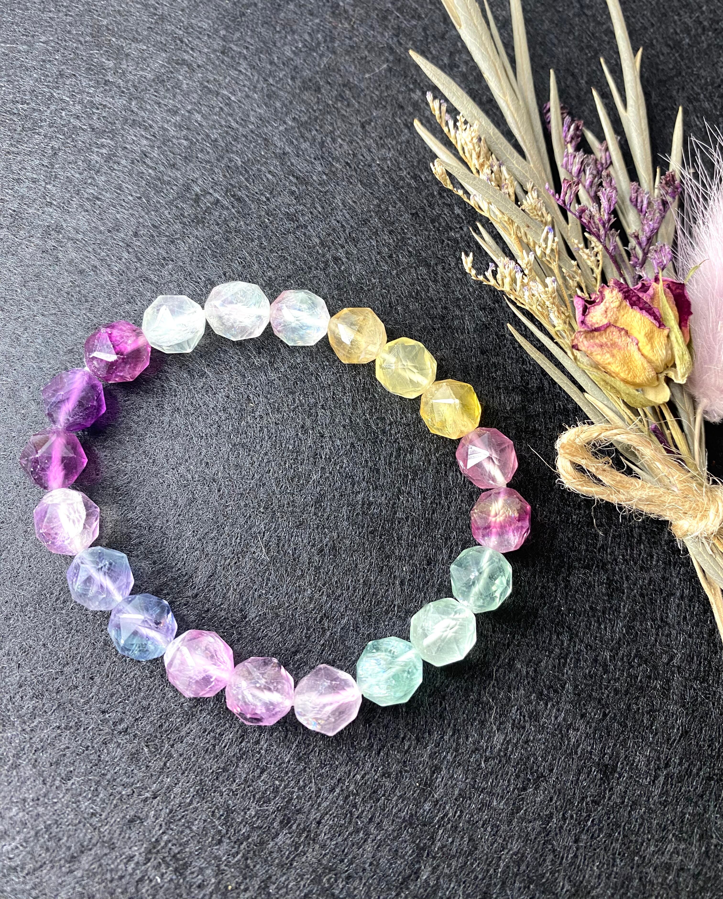 ダイヤモンドカットフローライトの癒しのパワーストーンブレスレット