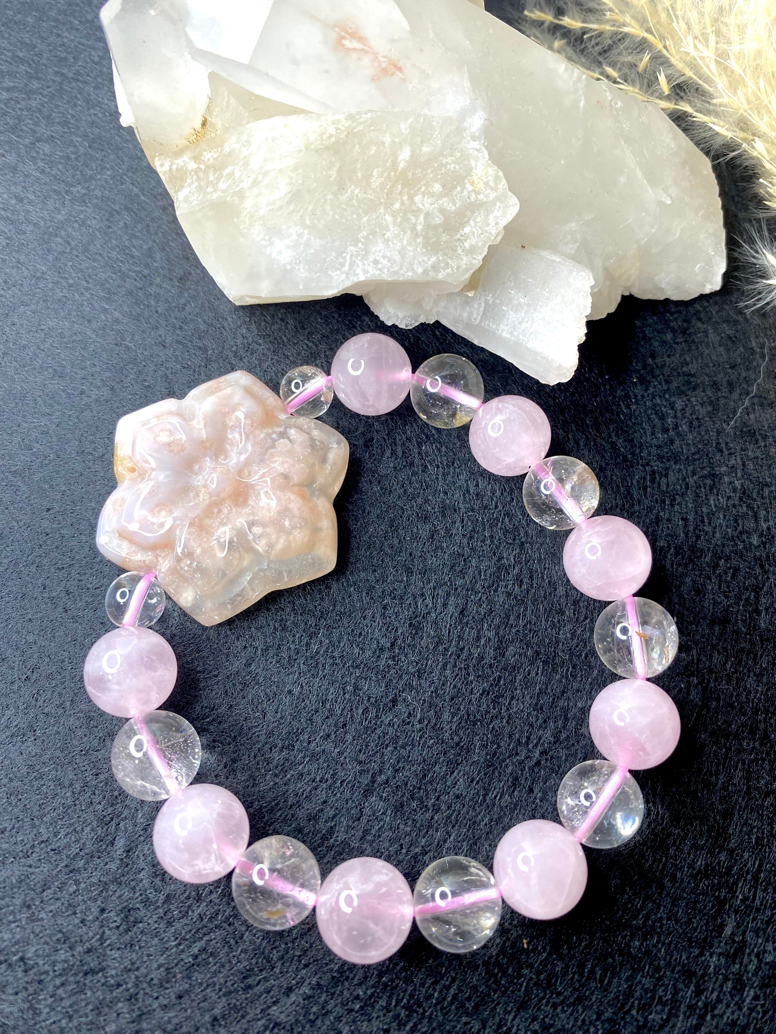 桜瑪瑙の花とローズクォーツの愛と癒しのブレスレット