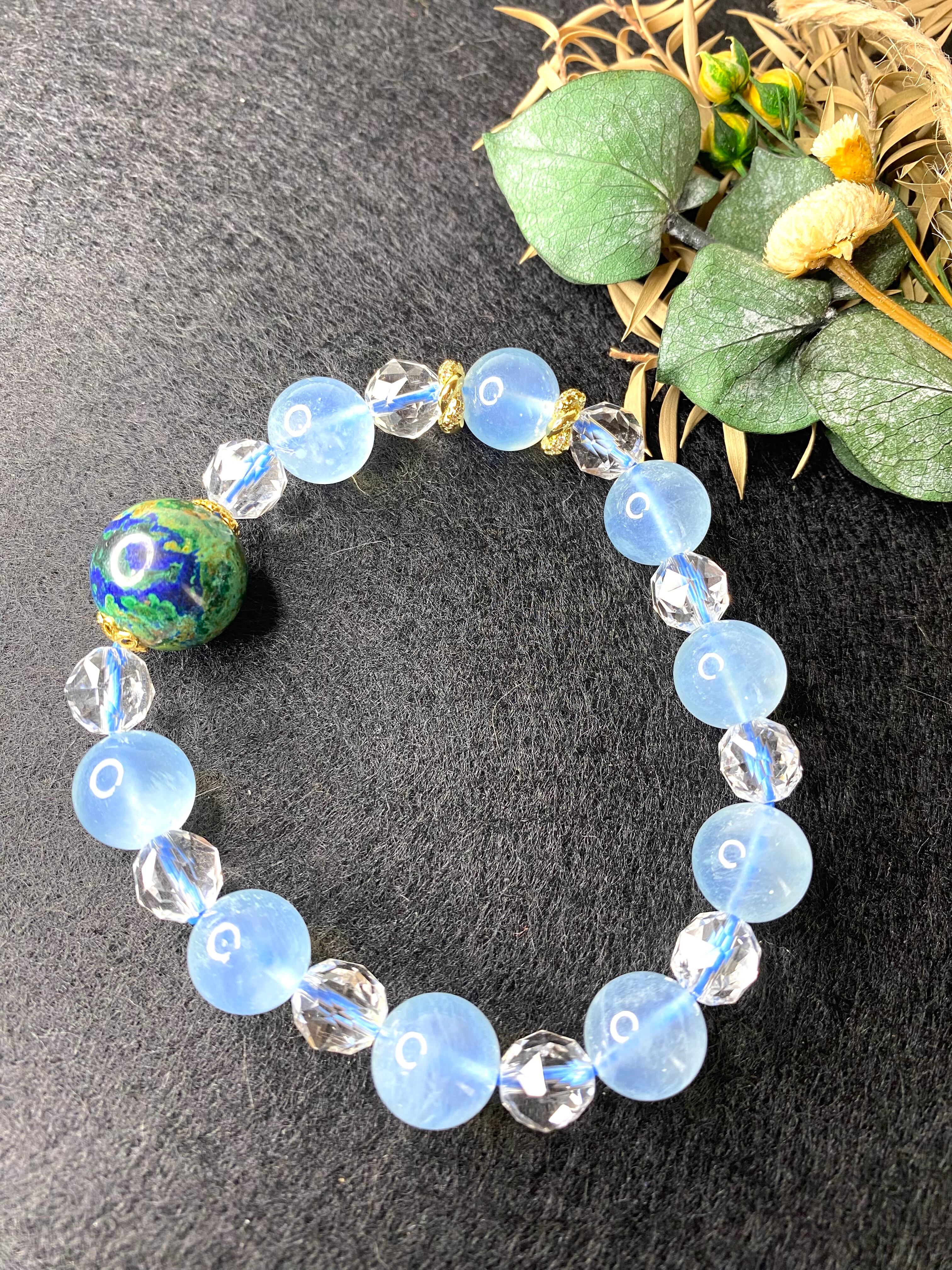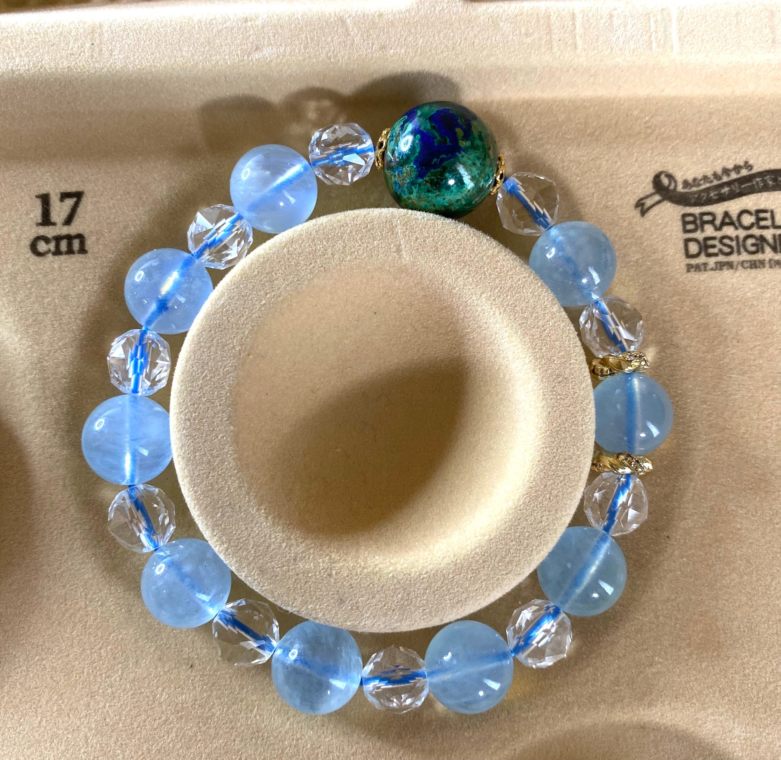 アズライトマラカイトとアクアマリンのお守りブレスレット