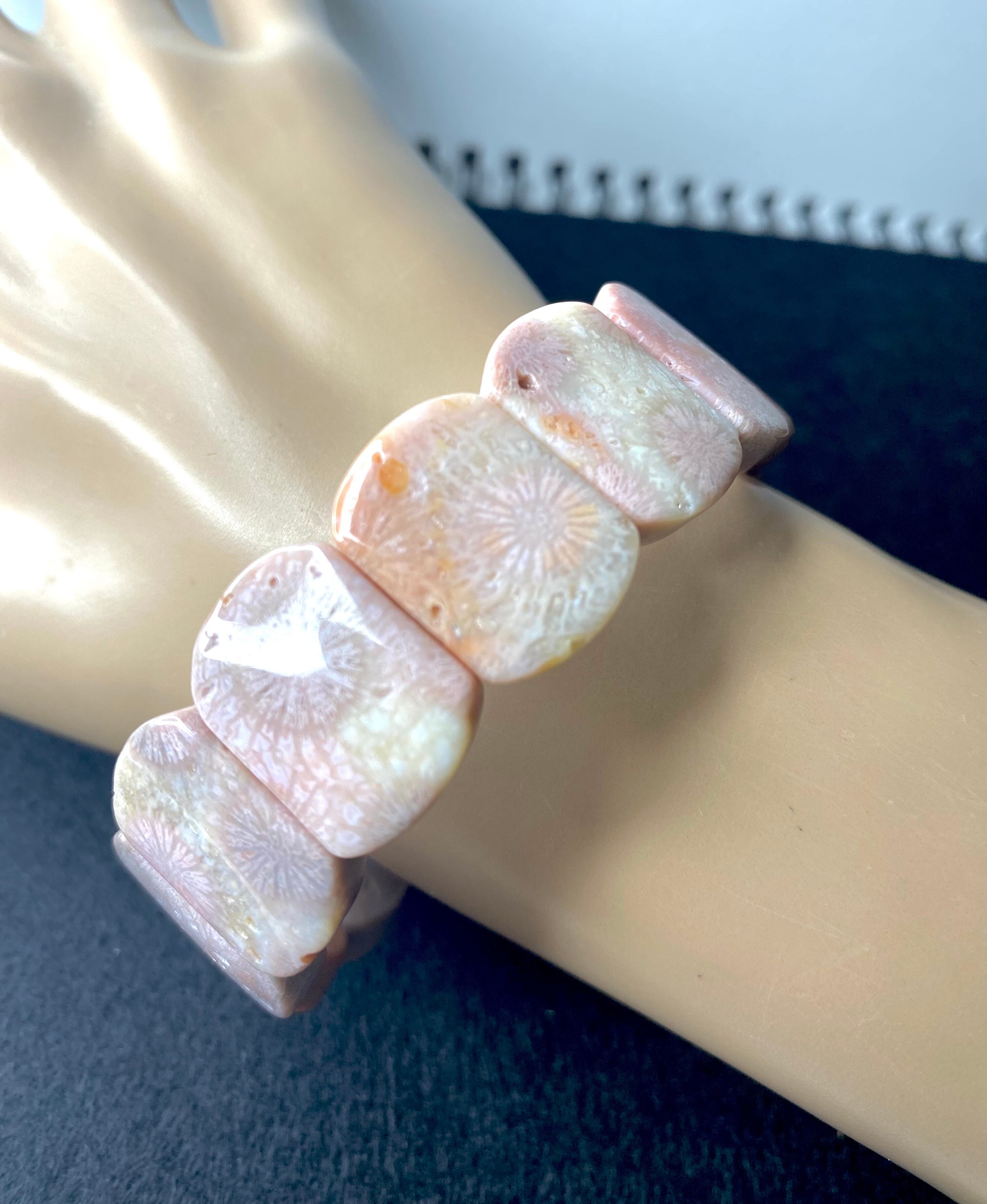 めちゃくちゃかわいいピンクのフォッシルコーラル癒しのバングル