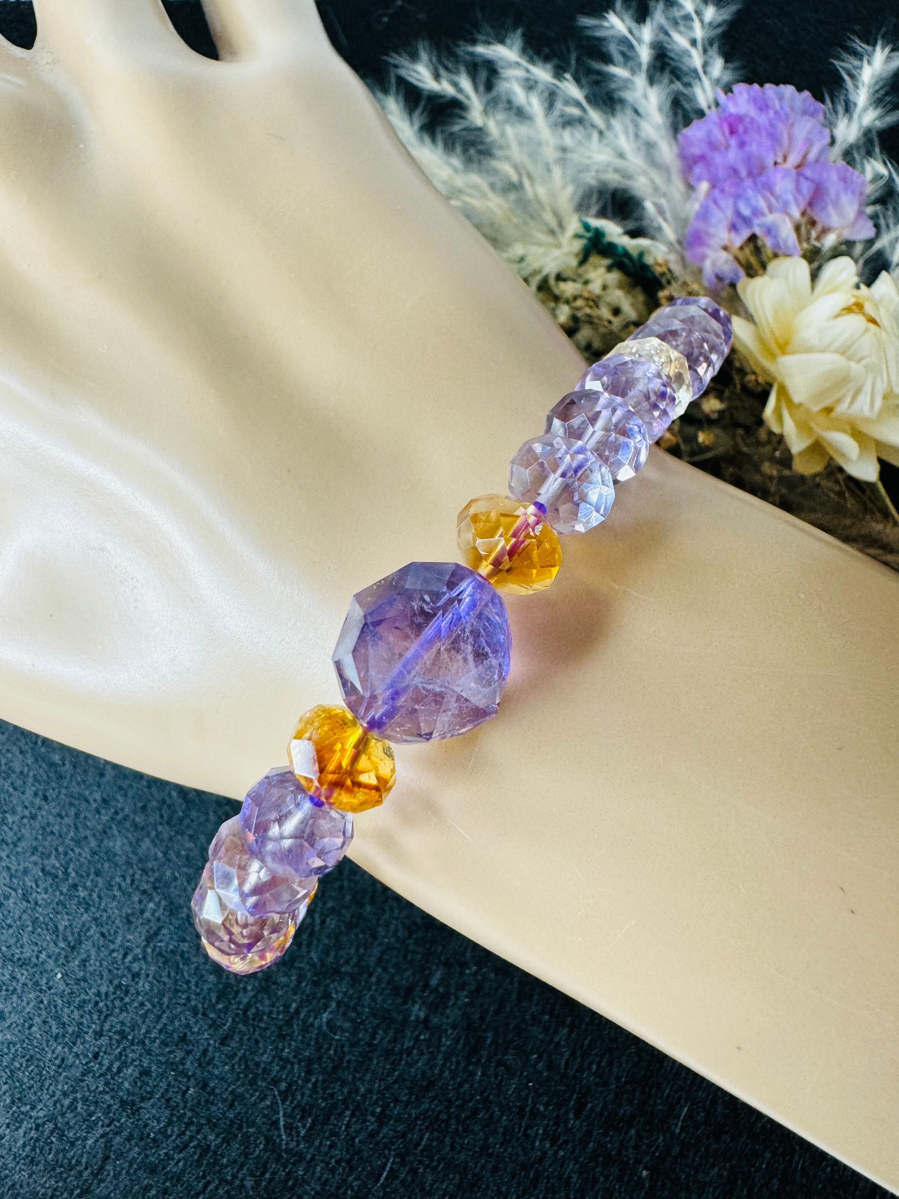 ☆ ふたつの石が混ざりあいひとつになることから「調和」の象徴とされるアメトリン。 心と体の調和を促し、ストレス・疲労感を取り除く効果があるといわれています。 憂うつや嫉妬、恐れなどネガティブな感情を消し去るアメジストと、明るく力強いエネルギーを放ち、内から活力を高めるシトリンの効果が期待できます。