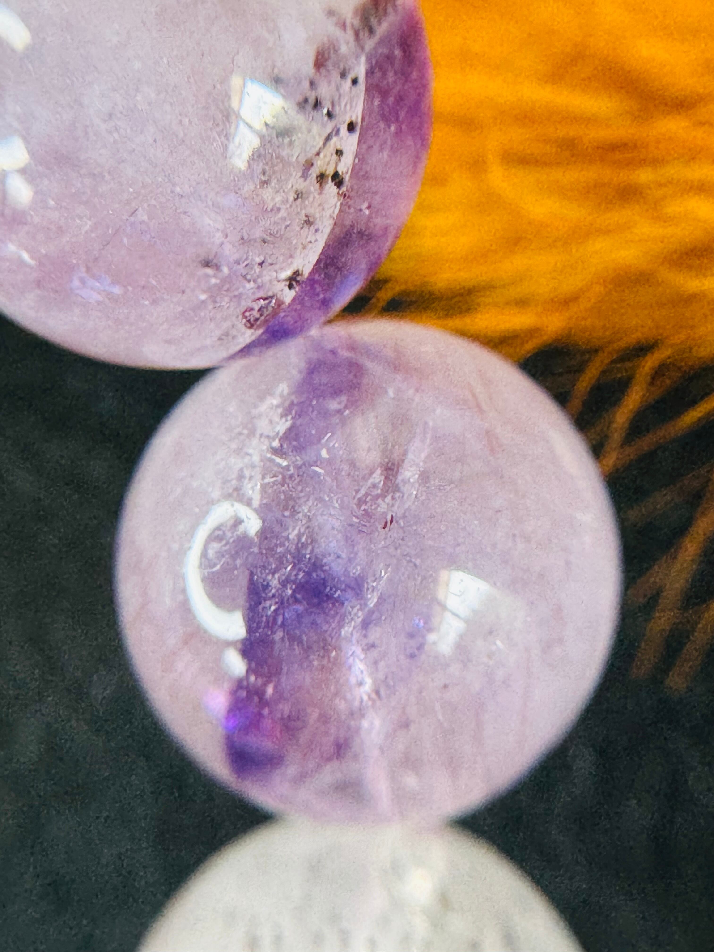 アメジストエレスチャルは、アメジストが成長していく数千年から数億年の長い期間で、内部にゲーサイトやレピドクロサイトなど、様々な鉱物を取り込むことで生まれたパワーストーンです。鉱物の内包具合や、アメジストの透明度などによって品質が大きく分かれ、内包物が多くなり、鉱物自体に見られる成分の種類が7種類になると「スーパーセブン」と呼ばれます。