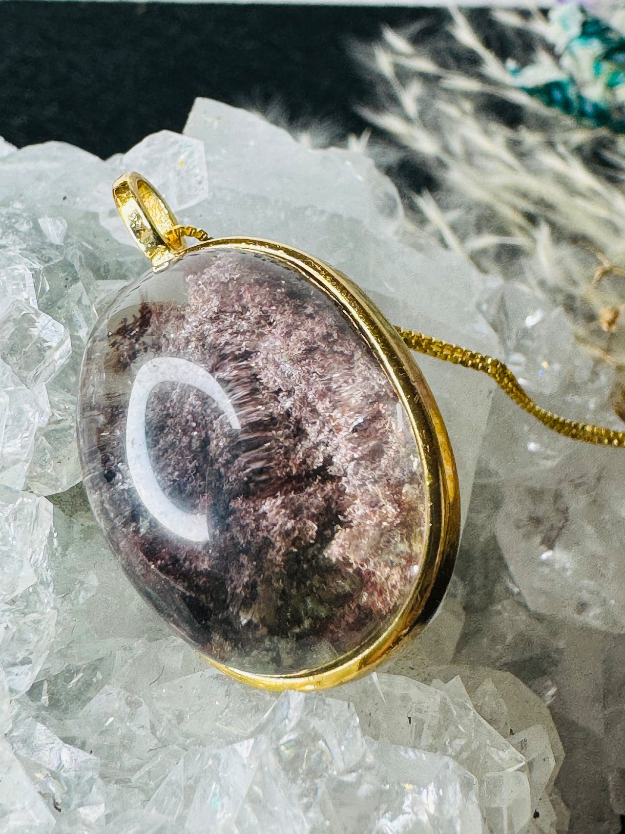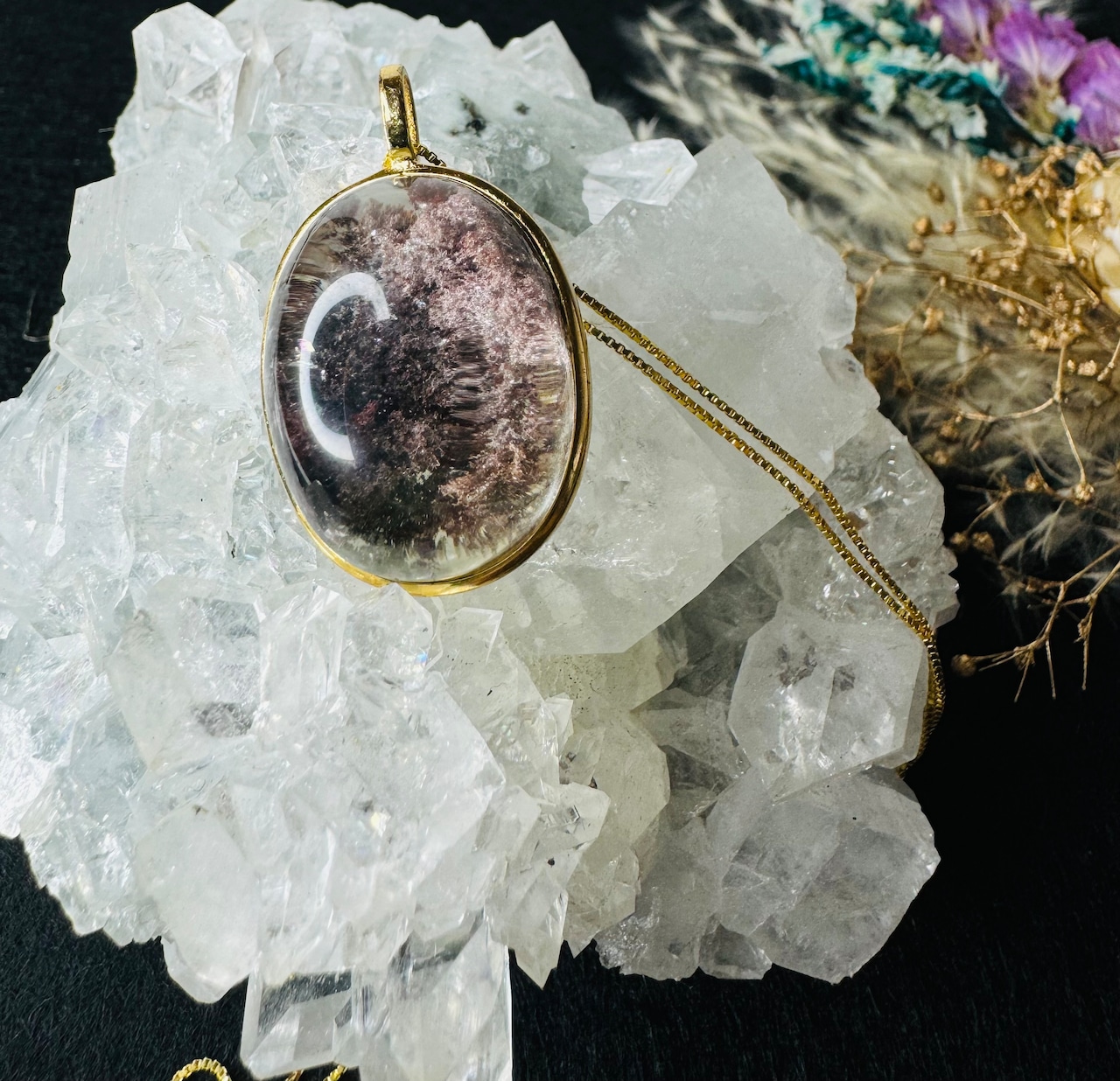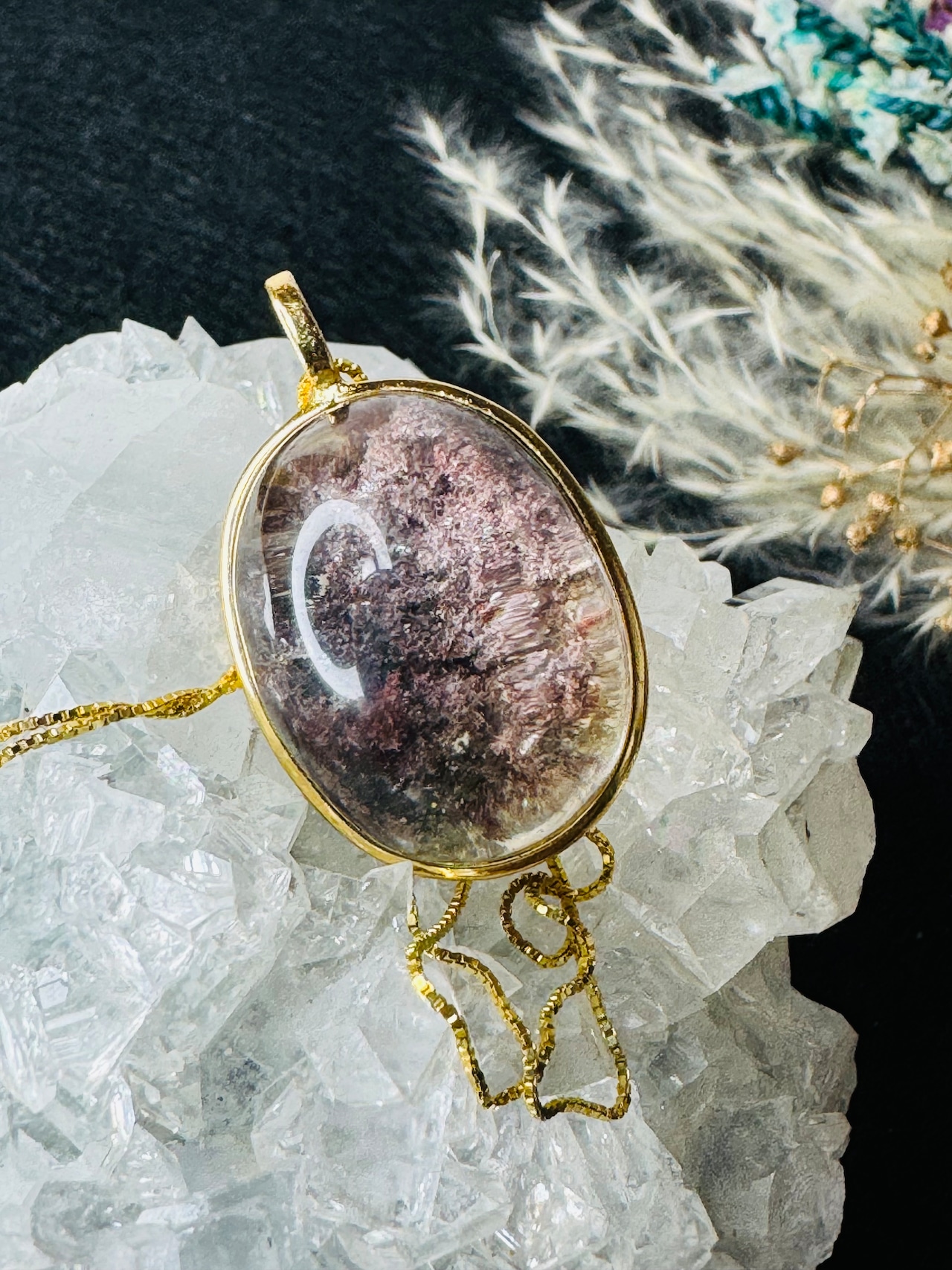 ガーデンクォーツは、成長の過程で他の鉱物や泥岩などを巻き込みながら結晶化したクォーツで、その中に含まれる内包物が木や草花、雪などの自然の風景を思わせます。水晶の中に広がっている景色が、石そのものが持つエネルギーと深い関係を持っているとされています。