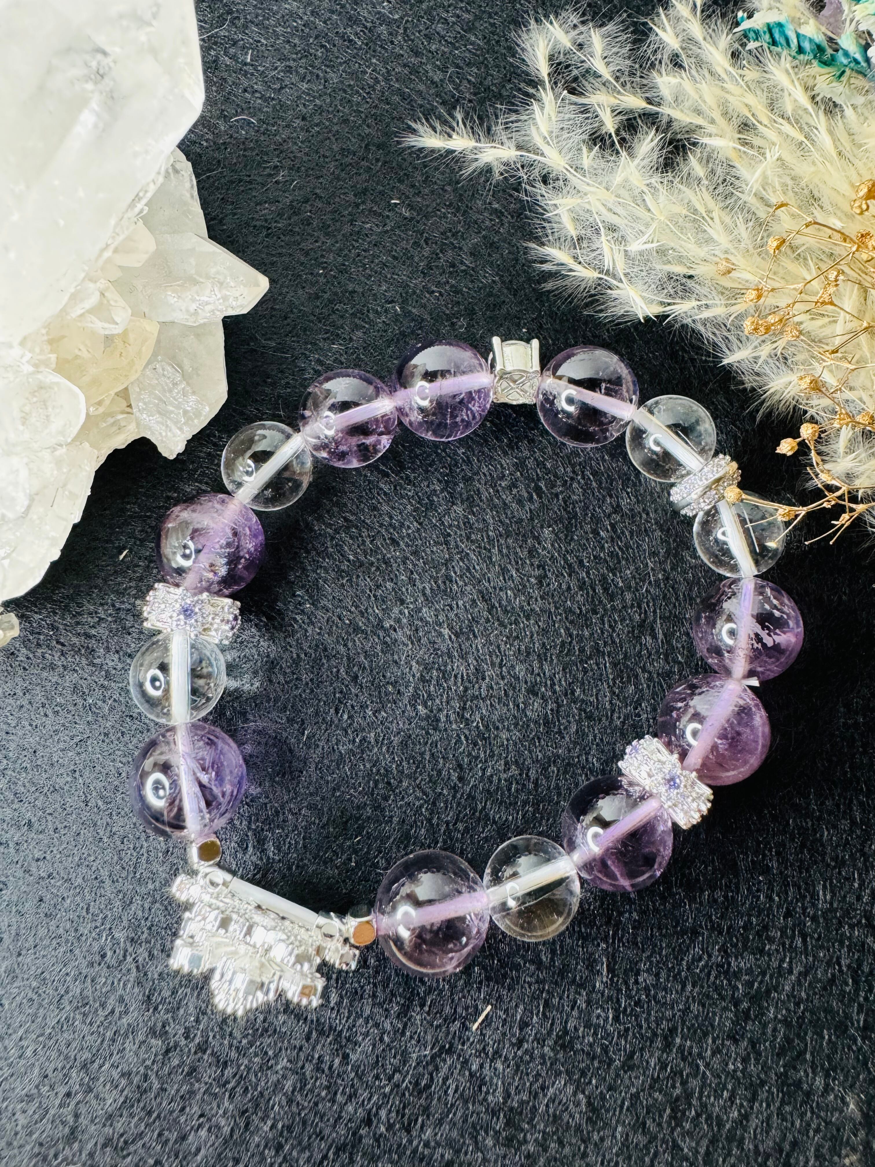 雪の結晶パーツ❄︎とアイリスピンクアメジストのブレスレット