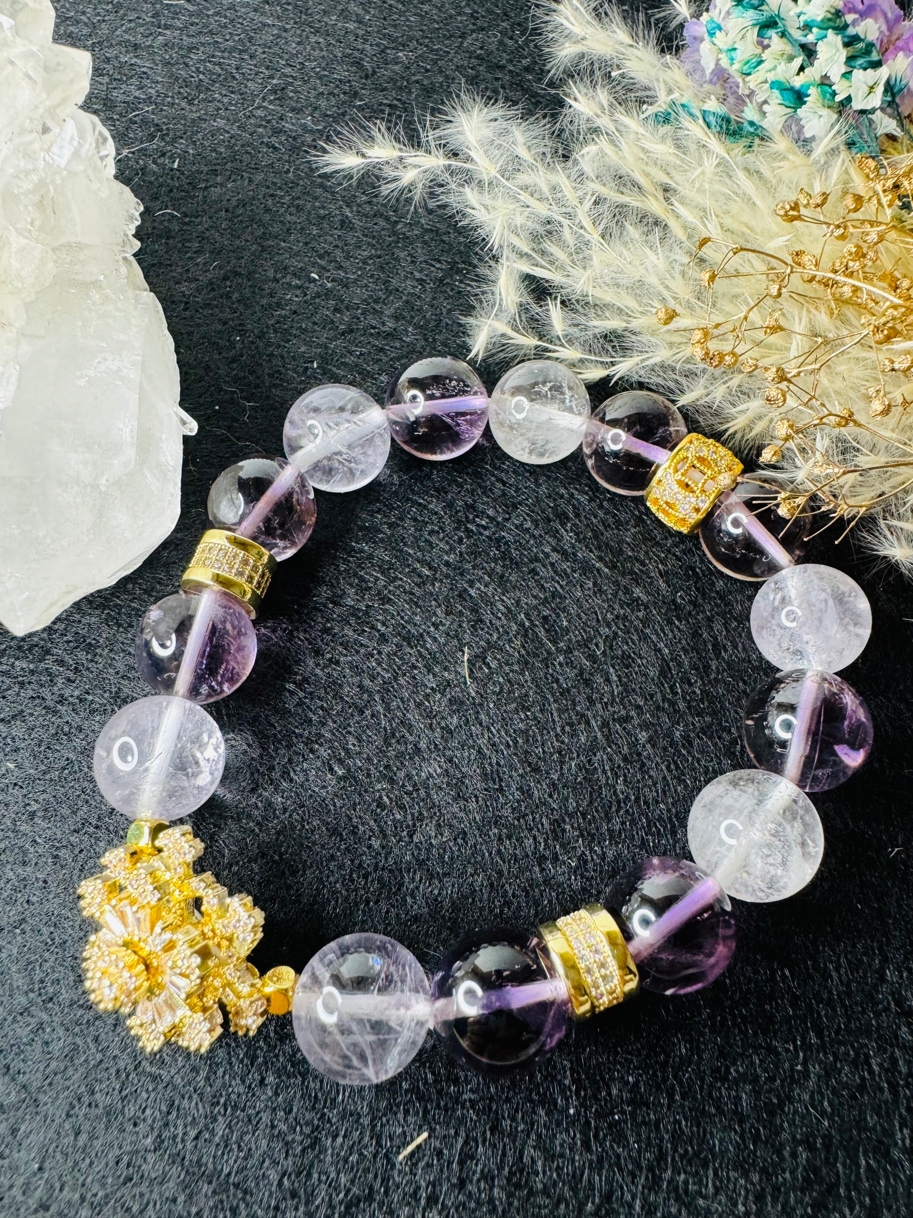 雪の結晶❄︎パーツとアイリスラベンダーアメジストのブレスレット