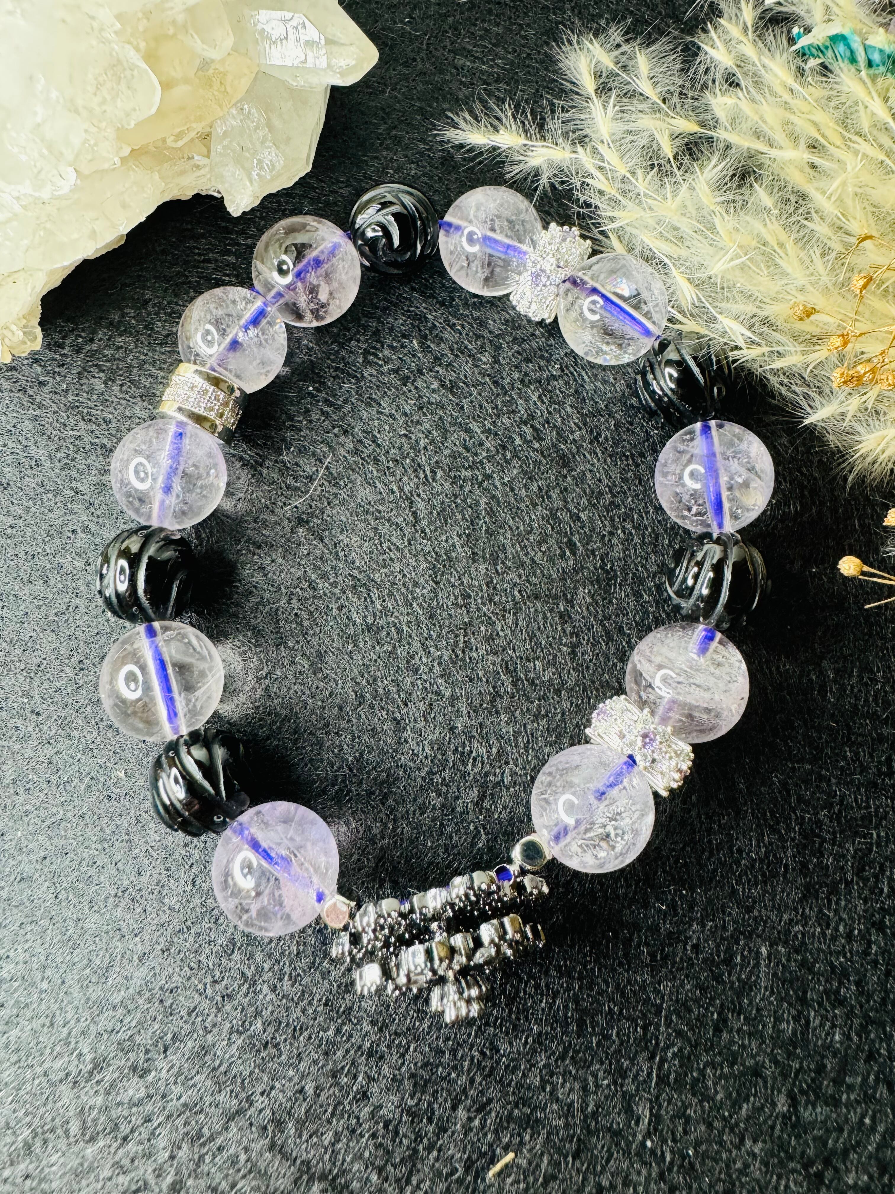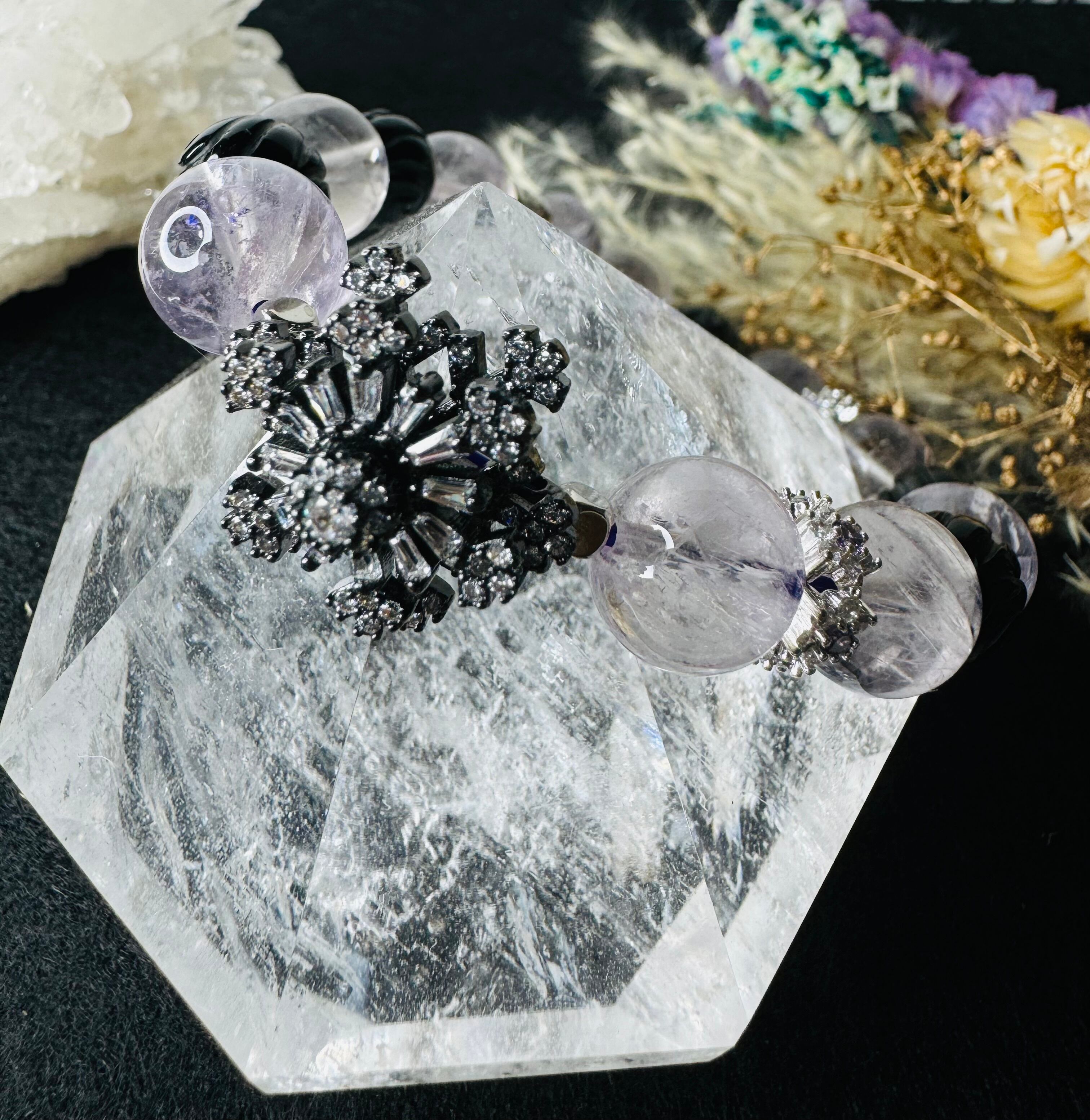 雪の結晶❄︎パーツとアイリスラベンダーアメジストとオニキスのブレスレット